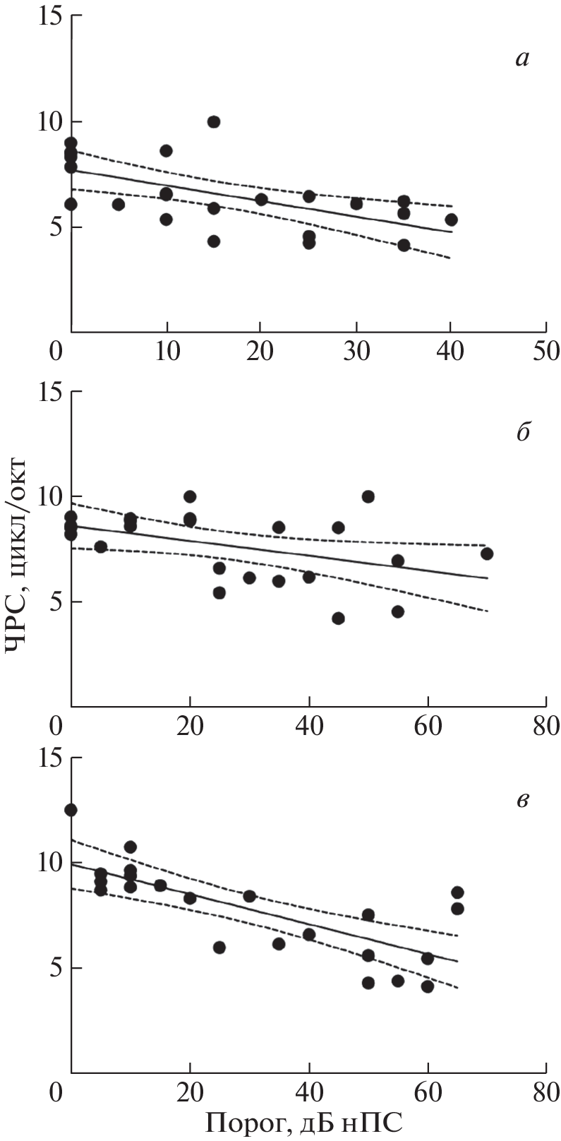 - Patterson R.D., Nimmo-Smith I., Weber D.L., Milory R. The deterioration of hearing with age: Frequency selectivity, the critical ratio, the audiogram, and speech threshold. J. Acoust. Soc. Am. 1982. V. 72. P. 1788–1803. https://doi.org/10.1121/1.388652
