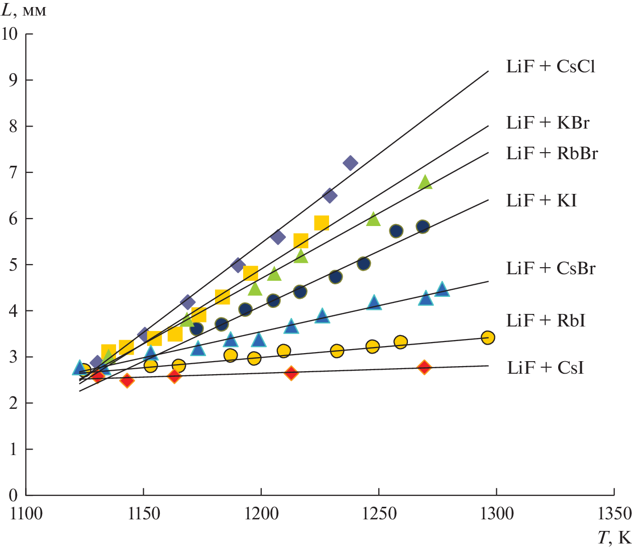 - Rukavishnikova I.V., Lockett V.N., Stepanov V.P. Interphase tension at the boundary of stratifying lithium fluoride-cesium halide melts // Russian J. Phys. Chem. 2009. 83. P. 1285–1288.