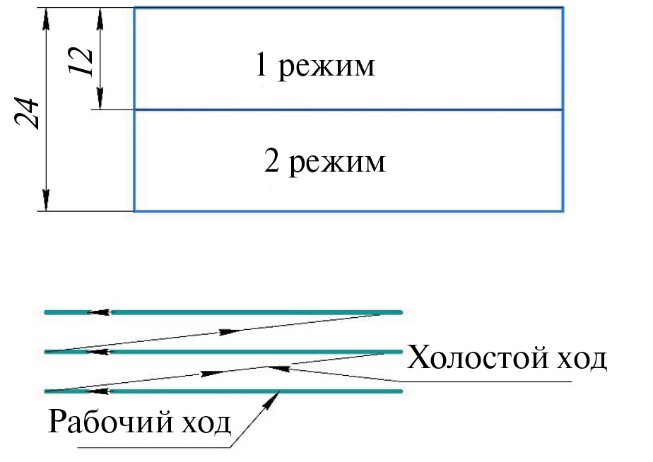 Рис. 6. Размеры обрабатываемой области и стратегия обработки.
