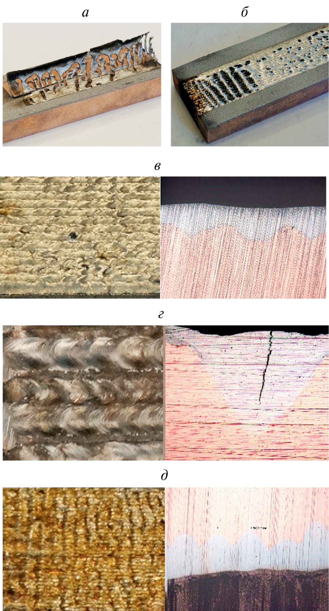 Рис. 9. Внешний вид образцов: а, б – зона 1; в – зона 2; г, д – зона 3.