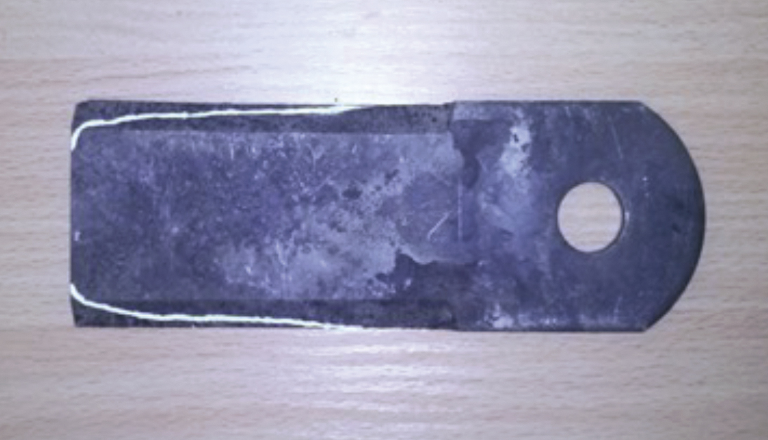 Наиболее существенными свойствами используемых сталей является износостойкость, твердость и вязкость. Предел прочности стали обычно изменяется в интервале 1800–2150 МПа. Для устойчивости против смятия необходимо использовать материал с пределом текучести 1050–1800 МПа. С целью обеспечения служебных свойств ножей соломоизмельчителя в них необходимо иметь мелкозернистую структуру, при этом поверхность должна быть твердой (мартенсит), а сердцевина – значительно более мягкой для погашения удара (остаточный аустенит). В современных условиях заводы-изготовители устройств для измельчения соломы используют ножи с односторонней заточкой, изготовленные из стали 65Г и упрочненные наплавкой твердыми сплавами с использованием ТВЧ [12–15].