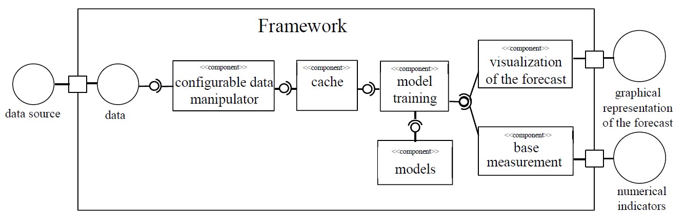 Фреймворк включает в себя единый базовый интерфейс для методов построения моделей прогнозирования временных рядов. На данный момент реализованы три метода: линейная регрессия (linear_regression_point_forecast_model), градиентный бустинг XGBoost (xgboost_point_forecast_model), сверточные нейронные сети (cnn_point_forecast_model).