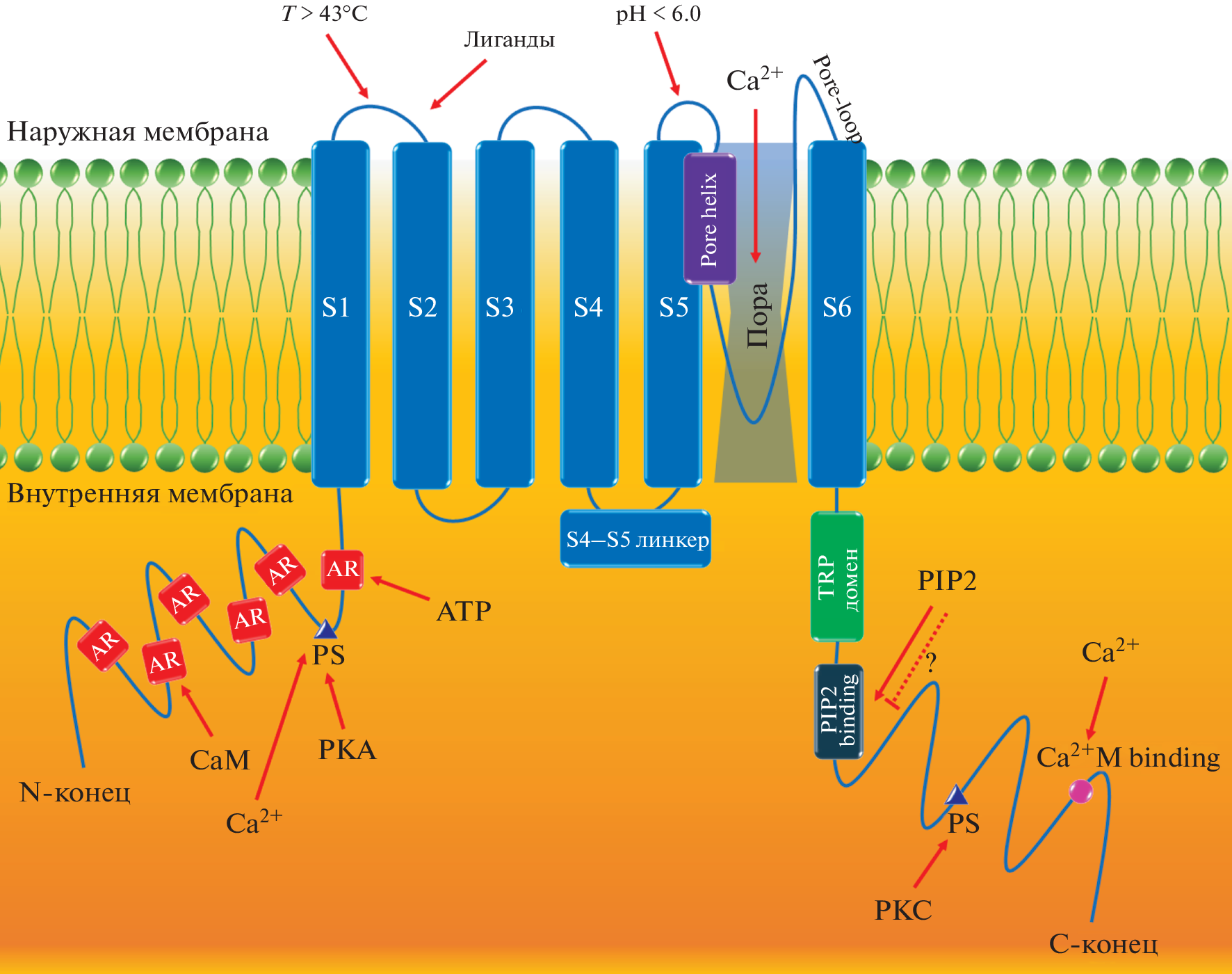 - Senning E.N. et al. Regulation of TRPV1 ion channel by phosphoinositide (4, 5)-bisphosphate: the role of membrane asymmetry // J. Biol. Chem. 2014. V. 289. № 16. P. 10999. https://doi.org/10.1074/jbc.M114.553180