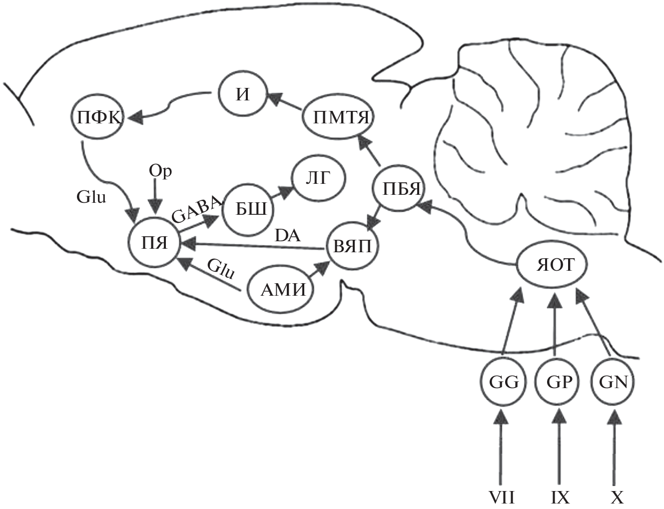 - Robinson T.G., Beart P.M. Excitant amino acid projections from rat amygdala and thalamus to nucleus accumbens // Brain Res. Bull. 1988. V. 20. P. 467–471. https://doi.org/10.1016/0361-9230(88)90136-0
