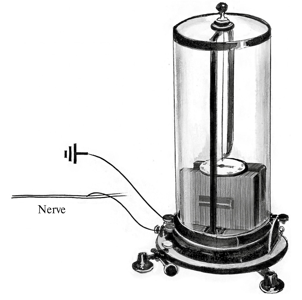 Значимые технические инновации были внесены Эмилем Дюбуа-Реймоном (Emil Du Bois-Reymond, 1818–1896), немецким физиологом и философом швейцарского происхождения. Во-первых, чтобы снять возражение Вольта, Дюбуа-Реймон разработал неполяризуемые электроды в виде проводника из амальгамы цинка и сульфата цинка с покрытием из формовочной глины. Им также был создан первый импульсный источник тока для градуированной стимуляции нерва и мышц. Он модифицировал гальванометр Нобили, добавив мультипликатор (фактически электрический трансформатор), что обеспечило достаточную чувствительность, чтобы детектировать импульсные биопотенциалы. Фактически Дюбуа-Реймон создал первый комплекс приборов для электрофизиологических исследований биологических тканей и прежде всего нервов и мышц. Используя нервно-мышечный препарат лягушки, он впервые продемонстрировал существование основных электрических явлений в возбудимых тканях, показав, что между интактной поверхностью и поперечным разрезом мышцы или нерва протекает постоянный ток покоя и при возбуждении мышцы и нерва этот ток кратковременно падает почти до нуля [35]. Как мы знаем сейчас, это явление, названное Дюбуа-Реймоном как отрицательное колебание (negative variation), связано с генерацией и распространением потенциал действия.