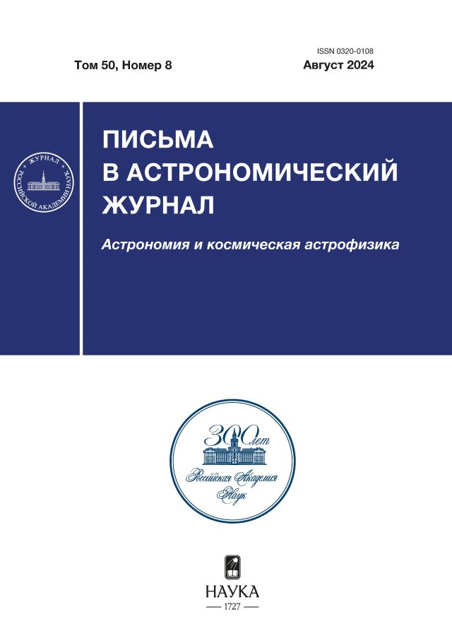 Исследована модель Галактики c баром, которая хорошо воспроизводит распределения наблюдательных радиальных VR и азимутальных VT скоростей звезд вдоль Галактоцентрического расстояния R, полученных по данным Gaia DR3. Модельные профили распределения радиальной скорости VR демонстрируют периодическое увеличение скорости VR и формирование горба на расстояниях 6–7 кпк. Средняя амплитуда и период изменения скорости VR составляют A = 1.76 ± 0.15 км/с и P = 2.1 ± 0.1 млрд лет. Мы вычислили углы θ01, θ02 и θ03, которые определяют ориентацию орбит относительно большой оси бара на интервалах времени соответственно 0–1, 1–2 и 2–3 млрд лет с начала моделирования. Звезды, орбиты которых меняют ориентацию следующим образом: 0◦ < θ01 < 45◦, −45◦ < θ02 < 0◦ и 0◦ < θ03 < 45◦, вносят существенный вклад в формирование горбов. Доля орбит, захваченных качаниями (librations) вблизи внешнего линдбладовского резонанса (OLR), среди орбит, лежащих как внутри, так и снаружи OLR, составляет 28%. Медианное значение периода колебаний качающихся орбит составляет P = 2.0 млрд лет. Медианное значение периода P долгопериодических изменений углового момента и полной энергии звезд увеличивается по мере приближения энергии Якоби к значению, соответствующему OLR, после чего резко падает. Распределение звезд модели по периоду P имеет два максимума: P = 0.6 и 1.9 млрд лет. К первому максимуму концентрируются звезды, орбиты которых лежат как внутри, так и снаружи радиуса коротации (CR). Распределение звезд, орбиты которых лежат как внутри, так и снаружи OLR, зависит от ориентации орбит: орбиты, вытянутые перпендикулярно бару, концентрируются к первому максимуму, а орбиты, вытянутые параллельно бару, — ко второму максимуму. Тот факт, что наблюдательный профиль распределения скорости VR, полученный по данным Gaia DR3, не имеет горба, указывает на то, что возраст Галактического бара, вычисленный с момента его выхода на полную мощность, должен лежать вблизи одного из двух значений: 2.0 ± 0.3 или 4.0 ± 0.5 млрд лет.