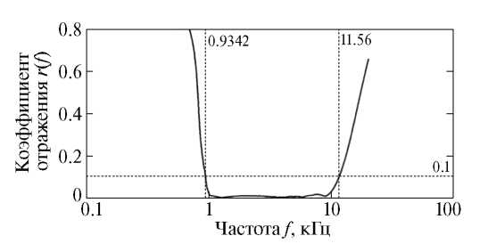 Рис. 5. Расчетный модуль r(f) коэффициента отражения звука от покрытия на рис. 4.