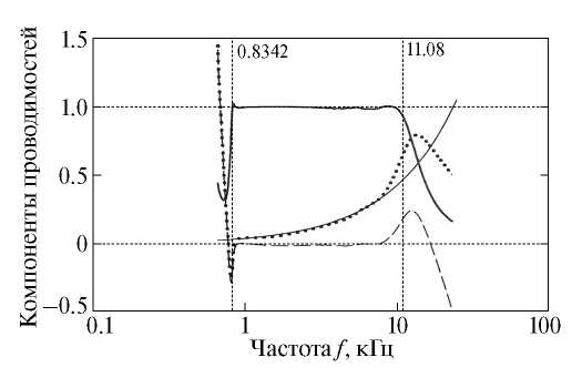 Рис. 8. Компоненты проводимостей покрытия с глицерином и компенсаторами. Обозначения те же, что и на рис. 6.