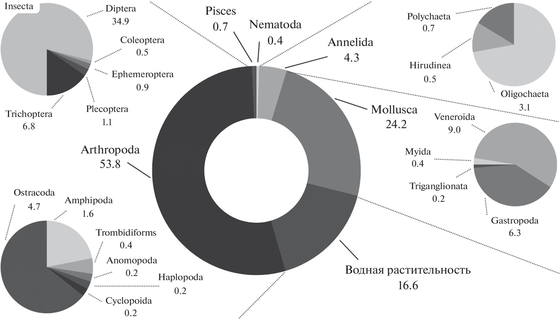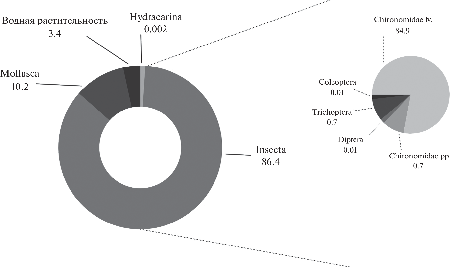 Data on spatial and age-related changes in the qualitative composition of food spectra (species and taxonomic diversity of invertebrates used as food objects) and quantitative characteristics (dominant types of food) of the common bream Abramis brama (L., 1758) are presented. Changes in nutrition and the ratio of prevailing taxonomic groups in different age groups are shown as the bream grows in the middle and lower reaches of the Severnaya Dvina River. Analysis of the results showed that the composition food’s lump included both representatives of the bottom fauna and planktonic organisms. Amphibiotic insect larvae, mollusks, and aquatic vegetation were the most numerous among the feeding objects. In addition, juvenile fish were present in the food lump of some age groups. Age variability in bream nutrition is reflected in the size-breadth of the food spectrum – in juveniles and older individuals, the components of nutrition are significantly less than in middle-aged fish.