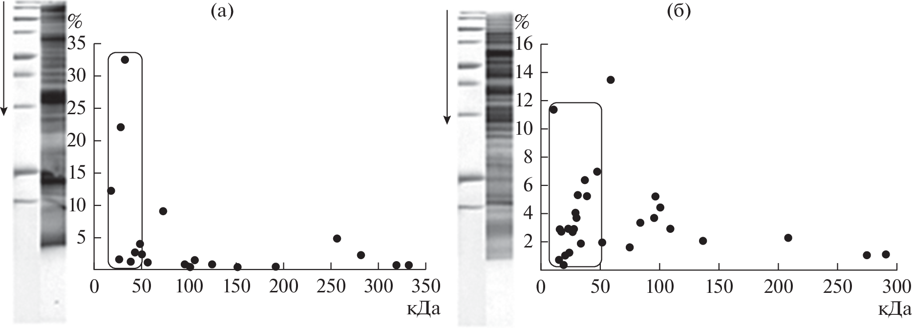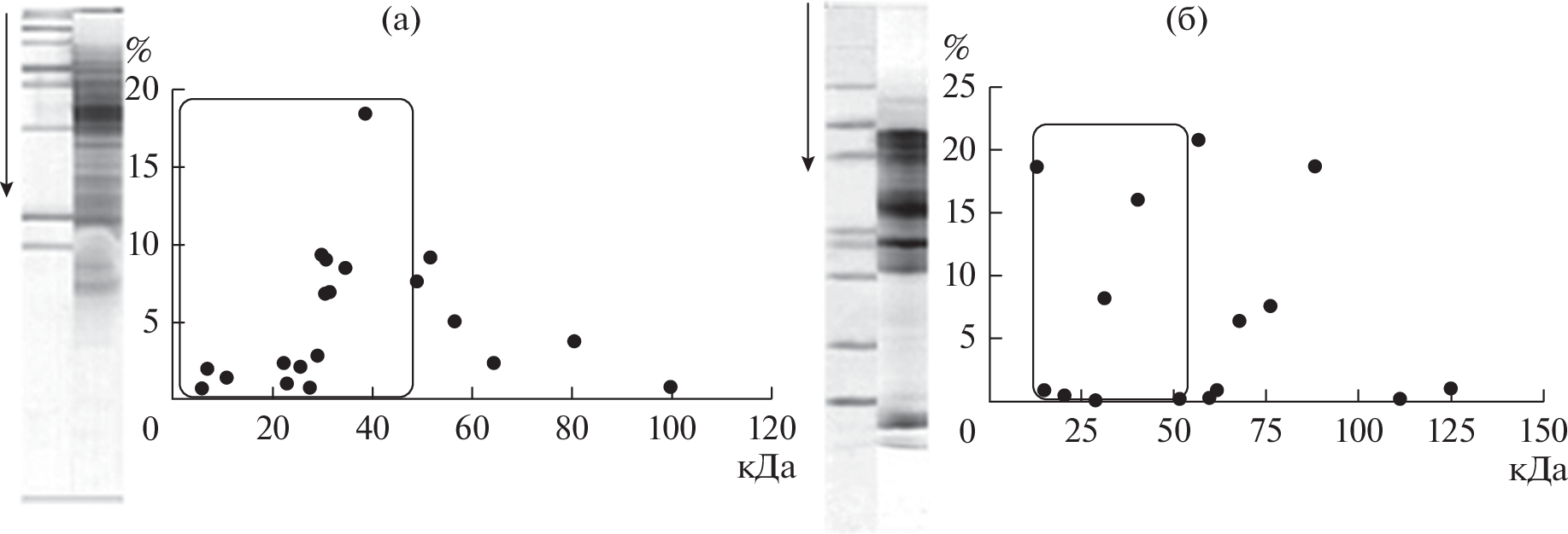 The protein composition of the incubation medium and extracts of various types of cestodes inhabiting the intestines of freshwater fish was investigated. Proteins with apparent molecular weights from 10 to 312.5 kDa were found in both biological media of worms. In most of the investigated worms, 64 to 82% of the protein bands in the incubation medium and the extract have an apparent molecular weight below 50 kDa. An assumption was made about the importance of these proteins in the vital activity of helminths and the need to concentrate further efforts on the study of this particular component of the proteome.