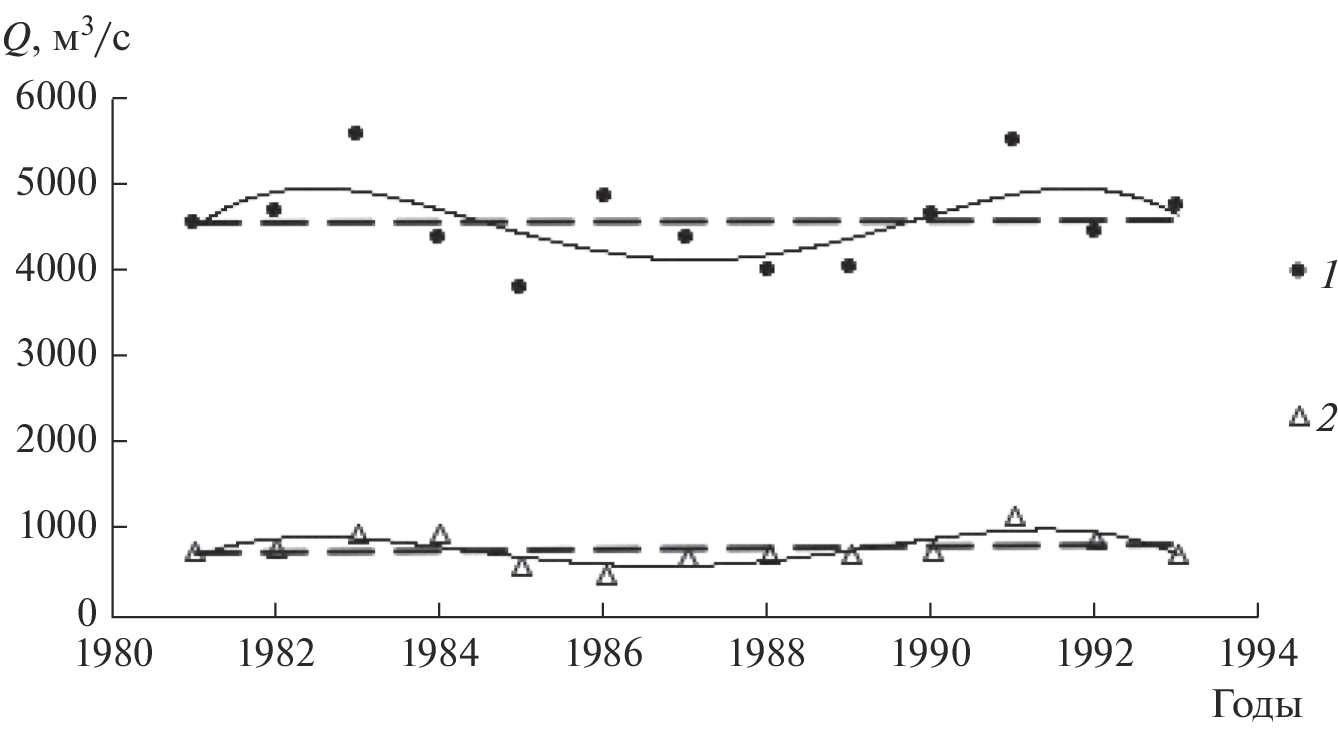 Long-term variations of water balance components are compared for the deltas of the Pechora and Koluma rivers, flowing in the occurrence area of discontinuous and continuous permafrost rocks. Trends in the variations in the major components of water balance equation (river water flow, precipitation, and losses or increment of runoff in the delta) are considered for the conditions of climate warming (the late XX–early XXI centuries). A distinct increase, most pronounced in 2008–2018, was recorded in the major components of water balance.