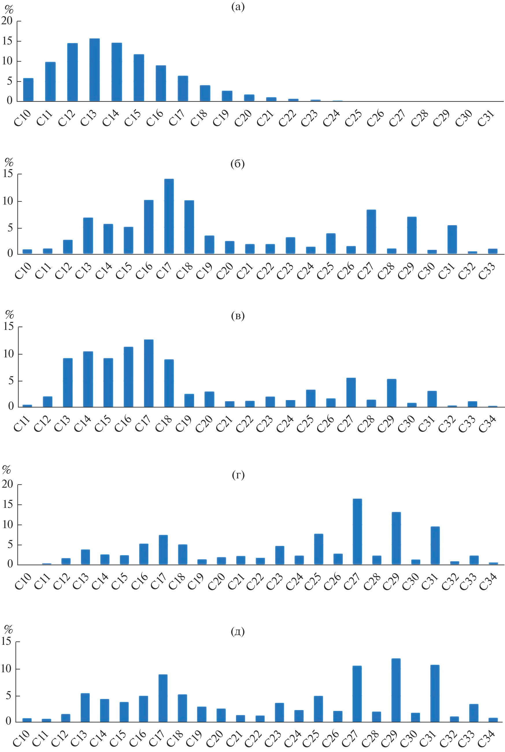 - Nishimura M., Baker E.W. Possible origin of n-alkanes with a remarkable even-to-odd predominance in recent marine sediments // Geochim. Cosmochim. Acta. 1986. V. 50. P. 299–305.