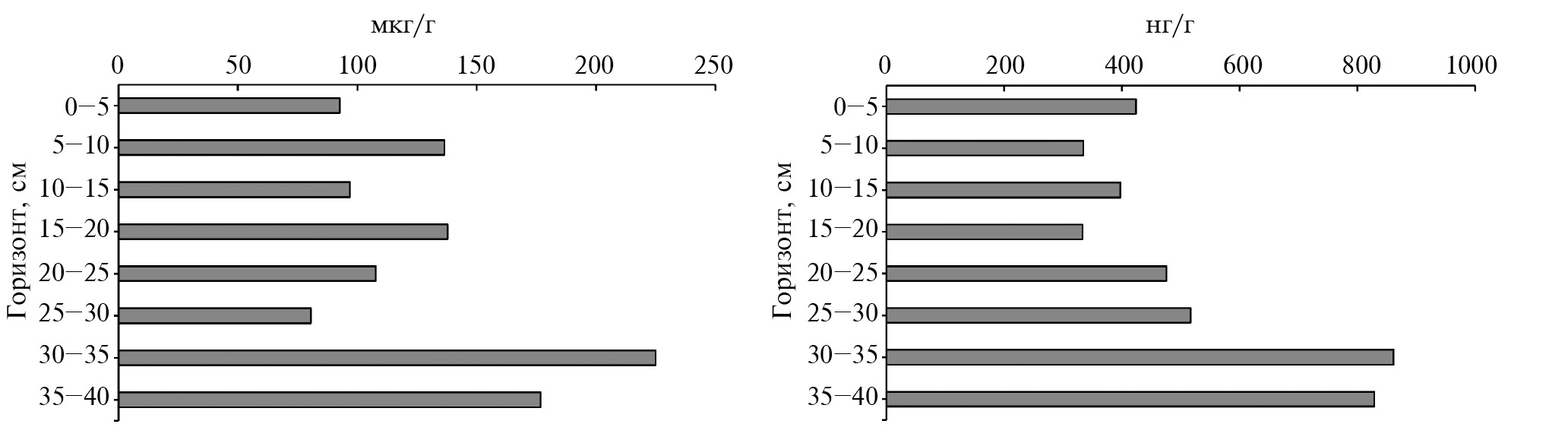 Через год после аварийного разлива дизельного топлива в Норильске концентрации углеводородов в донных осадках Норило-Пясинской водной системы снизились, но в среднем по районам уменьшались в поверхностном слое в той же последовательности, как и в 2020 г.: устье р. Амбарная (835 мкг/г, σ = 1788) > руч. Безымянный – р. Далдыкан – р. Амбарная (306, σ = 273) > р. Пясина (23, σ = 20) > оз. Пясино (12 мкг/г, σ = 8). Снижение концентраций произошло за счет деградации низкомолекулярных углеводородов. Содержание полициклических ароматических углеводородов в 2021 г. изменялось также в меньшем интервале (0–1027 нг/г), чем в 2020 г. (0–3865 нг/г). Нефтяное происхождение углеводородов в осадках руч. Безымянного, рек Далдыкан и Амбарной подтверждают высокие концентрации в их составе алкилированных гомологов нафталина. Аккумулирование углеводородов в отдельных горизонтах осадочной толщи обусловлено не только просачиванием дизельного топлива, но и привносом органических веществ с заболоченных участков и пойменных озер, а также погребением поверхностного слоя паводком 2021 г.