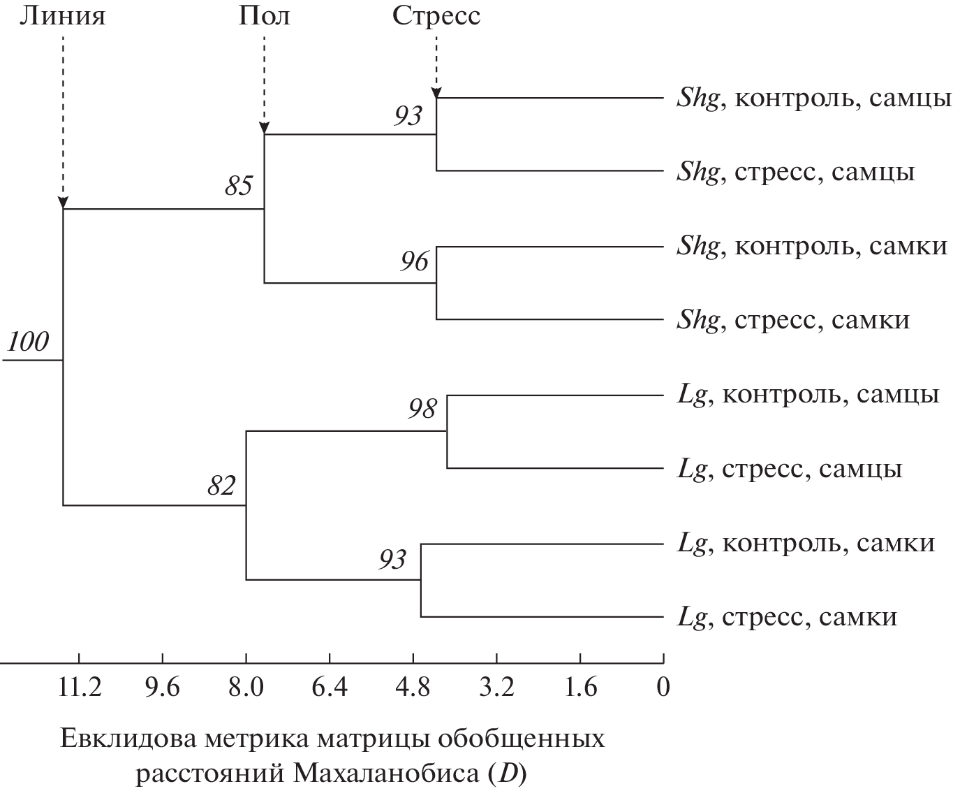 The morphogenetic consequences of short-term heat stress (SHS) were studied in two housefly lines that were massively selected for lifespan based on assessing the variability of the adult wing using geometric morphometry methods. Significant differences in wing size and shape were revealed between control and impact groups of different sexes in the Shg (short-lived) and Lg (long-lived) lines. The CTS effect manifested itself in an increase in the size of the wing and a directional change in its shape. The intergroup hierarchy of sex and stress-induced differences is expressed equally in both strains of flies. The range of linear differences is significantly higher than gender differences, which in turn are higher than the level of stress-induced ones. The instability of the adult wing development (Vm) of the Shg line is significantly higher than that of the Lg line, and higher in all groups of females, but in most cases significantly lower in impact groups (taking into account the increase in size, the latter may be associated with the effect of hormesis). It is hypothesized that the directed morphogenetic effects of CTS are based on hidden species-specific modifications, the appearance of which in the phenotype is caused by stress-induced epigenetic rearrangements of the genome, causing similar morphological changes in the wing in groups of males and females of adults of both lines. The phenotypic plasticity of lines during selection for different life spans and changes caused by CTC directly indicate the reality of stress-induced rapid morphogenetic rearrangements during a sharp change in environmental conditions.