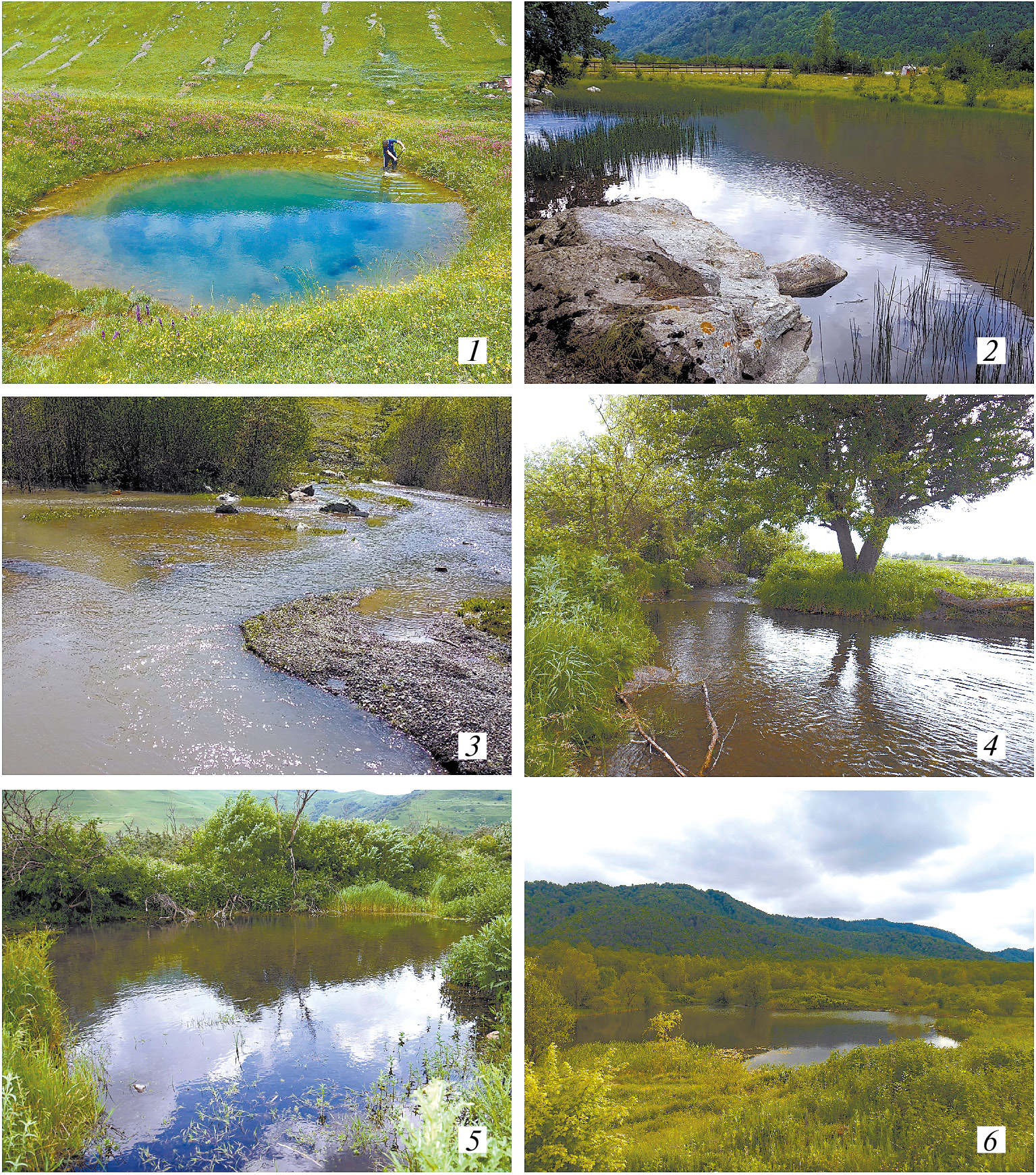 Рис. 2. Местообитания водных клопов и водомерок в Северной Осетии