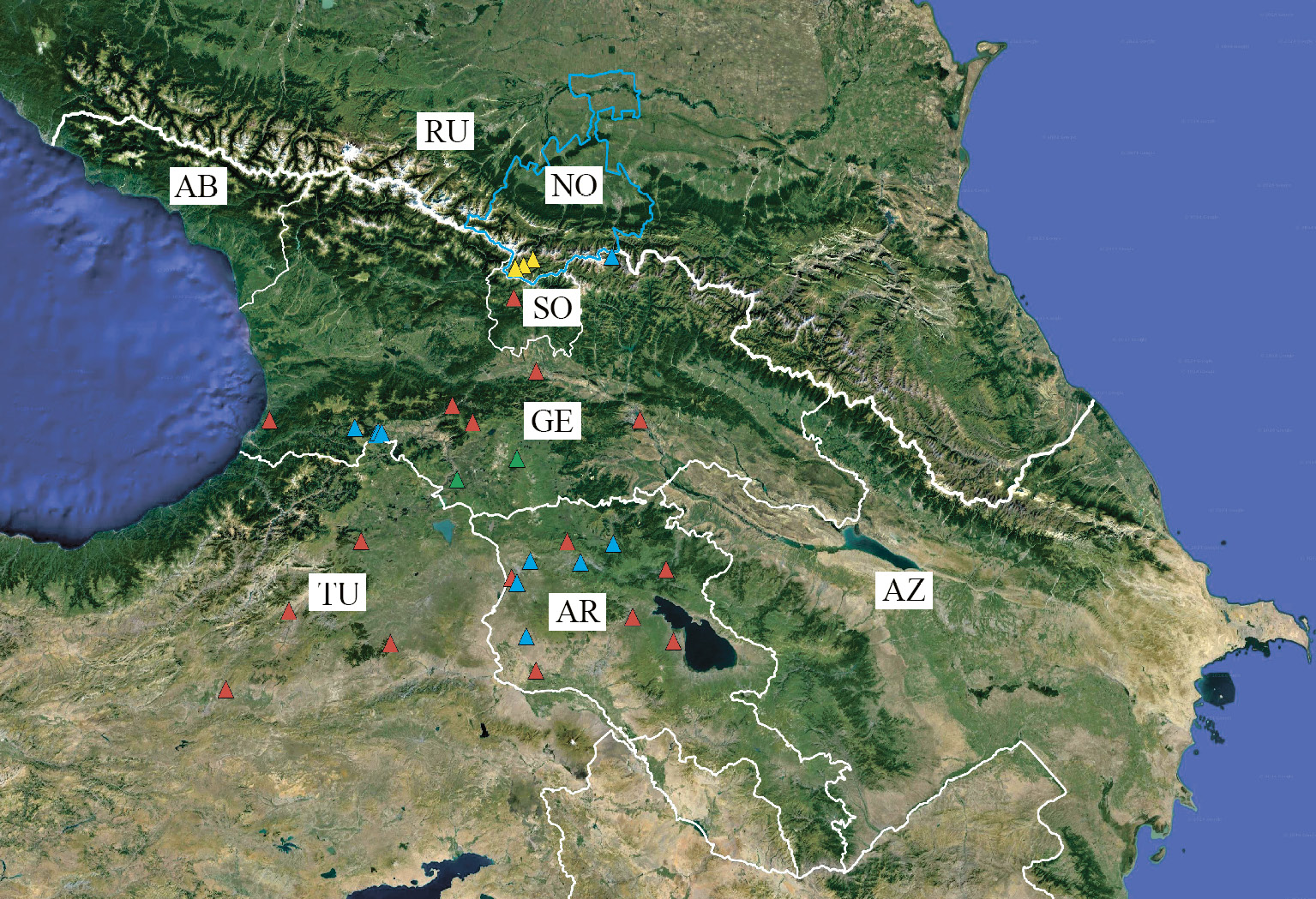 Шаповалов и др., 2018 (Северная Осетия); Винокуров и др., 2019 (Казбек).