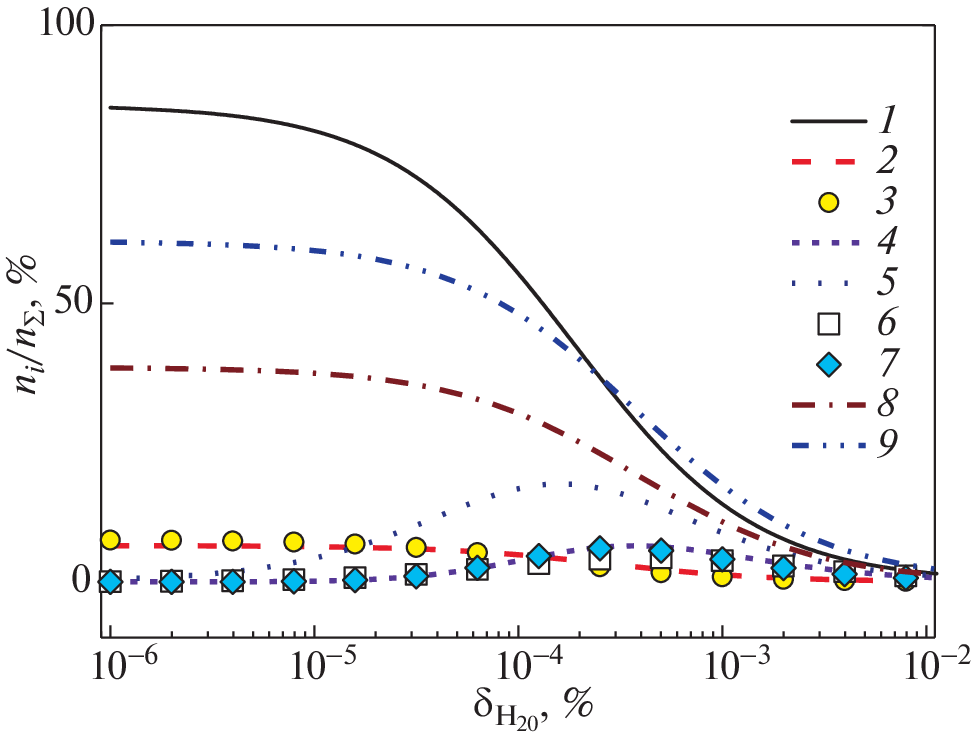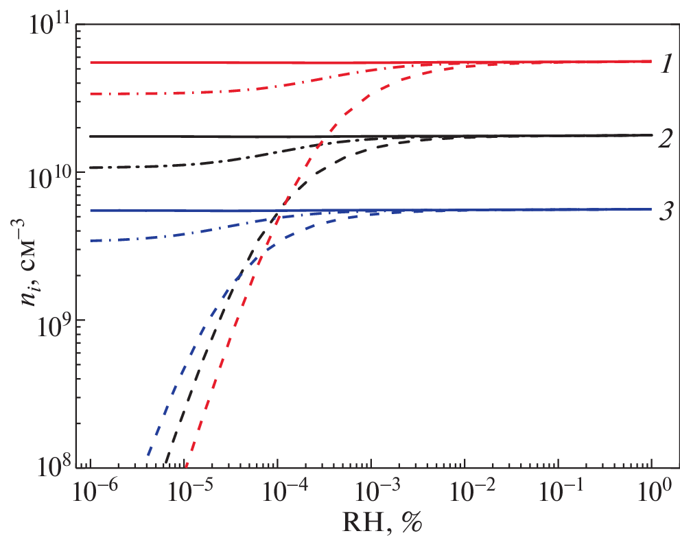 The rate of iron corrosion in a low-temperature plasma of moist air formed under the action of a fast electron beam, depending on the relative air humidity, was measured. It is shown that a beam of fast electrons (radioactive β-radiation) significantly intensifies the corrosion of iron in a plasma-forming gas medium in which oxygen and water vapour are simultaneously present. It has been established that the rate of corrosion under conditions of radioactive irradiation increases sharply when the relative air humidity exceeds 10%. Numerical simulation of the ionic composition of the plasma is carried out taking into account 12 types of positive and 12 types of negative hydrated ions at different intensities of the external ionization source and at different values of relative humidity from 10–6 to 100%. A hypothesis has been put forward about the determining role of cluster hydrated ions, which are formed in the plasma of moist air at atmospheric pressure, in heterogeneous processes of iron oxidation.