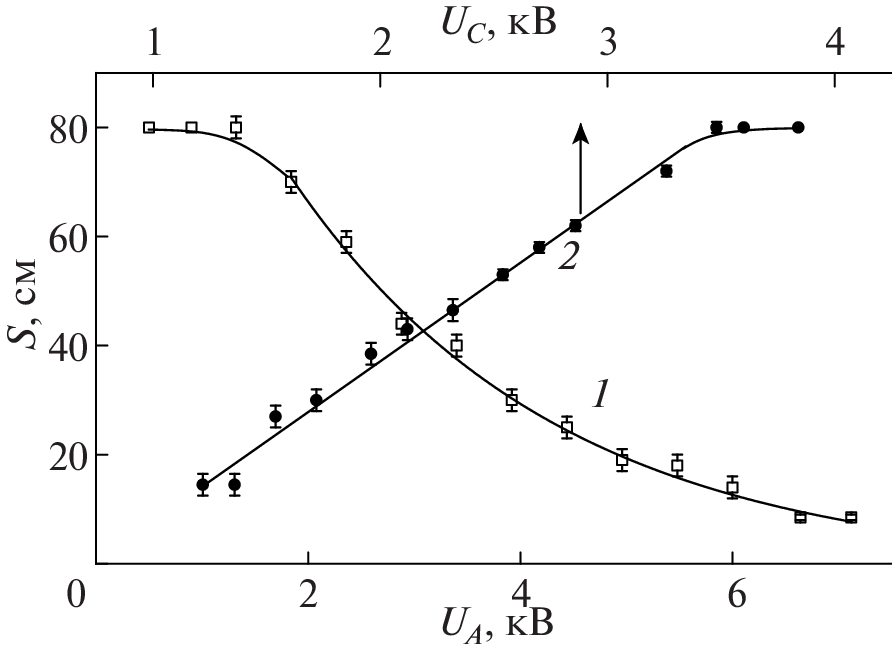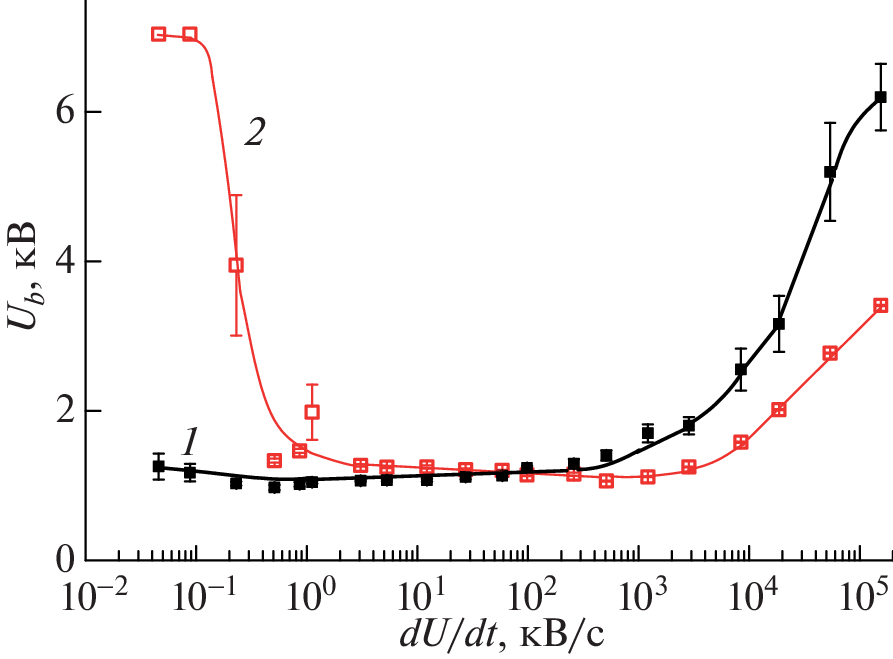 Исследован процесс электрического пробоя в разрядной трубке длиной 80 см и внутренним диаметром 1.5 см (так называемой “длинной разрядной трубке”) в ксеноне при давлении 1 Торр. Пробой осуществлялся положительными импульсами с линейно растущим передним фронтом крутизной dU/dt порядка 10–1–105 кВ/с. Измерялось напряжение пробоя в темноте и при освещении разрядной трубки люминесцентными лампами, светодиодами или диодным лазером. Воздействие освещения на напряжение пробоя зависит от крутизны фронта. При dU/dt > 100 кВ/с напряжение падает, при dU/dt < 100 кВ/с – растет. При 0.1–1 кВ/с этот рост достигает шести раз. Исследована зависимость наблюдаемого эффекта от интенсивности излучения, его длины волны и положения освещаемой области поверхности трубки. Предпробойная волна ионизации ведет себя в этих условиях необычно: ее скорость и интенсивность излучения фронта растут при ее движении. В качестве механизма наблюдаемых явлений рассматривается фотодесорбция электронов с поверхности трубки, в результате которой стенка вблизи анода приобретает положительный заряд. Это приводит к повышению пробойного напряжения и ускоренному движению волны ионизации. Проведены дополнительные эксперименты, подтверждающие наличие в этих условиях стеночного заряда в прианодной области.