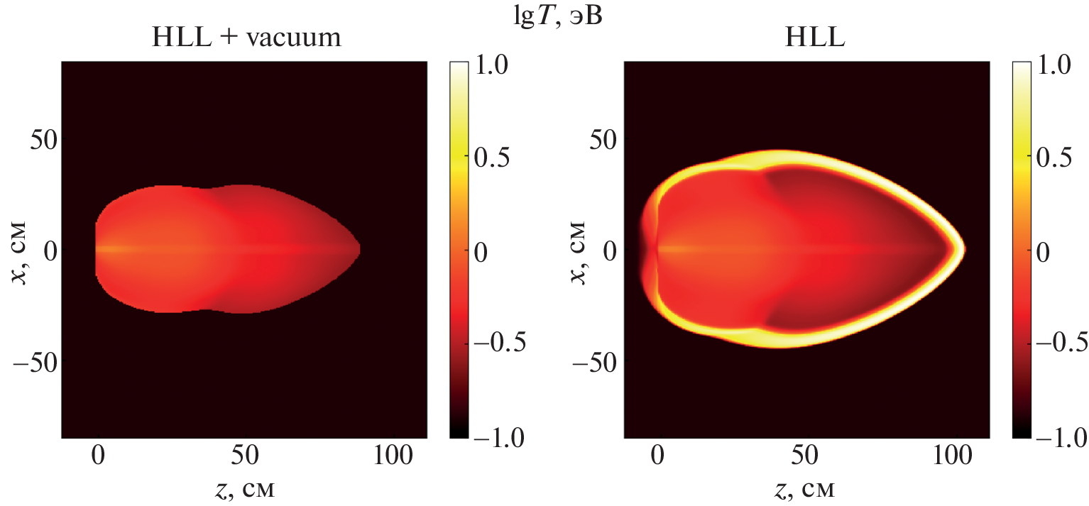 Представлены результаты численного трехмерного моделирования динамики высокоскоростных струй алюминиевой плазмы при их инжекции в сильно разреженную ионосферу Земли, которую можно считать вакуумом. Приведено описание модификации стандартного гидродинамического подхода, позволяющей учитывать режим сверхзвукового истечения плазмы в вакуум. Рассмотрены сценарии одиночной и встречной инжекций. Определены газодинамические параметры плазменных образований и их оптические характеристики, полученные при использовании стандартного и модифицированного подходов.