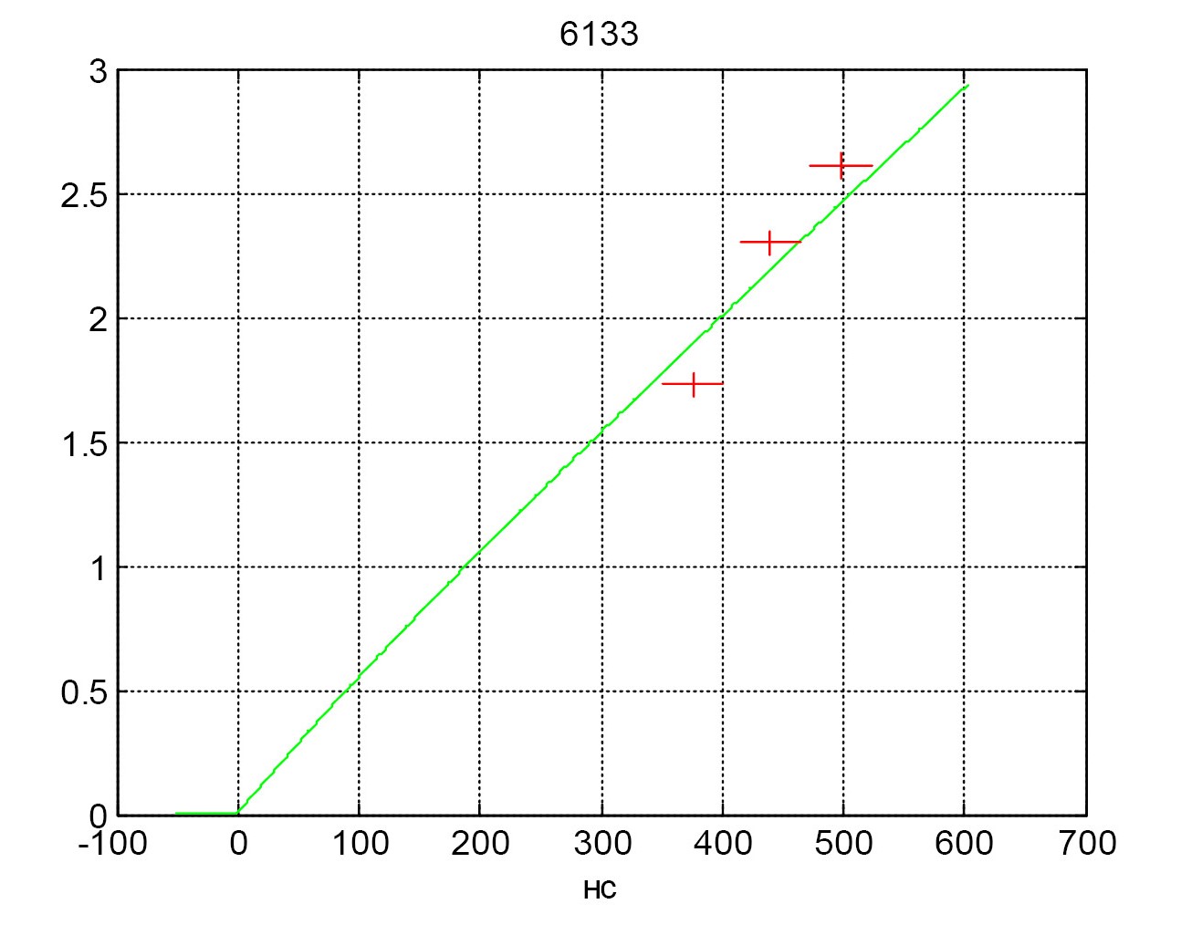 На рис. 13 представлена обработка результатов одного выстрела № 6133, в котором были задействованы обе эти методики, а к тыльной поверхности ударника был прикреплен кристалл LiF. Зависимость скорости от времени для кривой «1280 м/с/п» (см. рис. 4) была проинтегрирована и таким образом получена зависимость смещения отражающей поверхности от времени. На этом же рис. 13 прямыми крестами нанесены три точки границы распространения волны сжатия в кристалле LiF, полученные в трех кадрах методом лазерной теневой фотографии (см. рис. 2). Как видим, результаты измерения скорости для этих двух методик находятся в удовлетворительном согласии, и зарегистрированная скорость внутри кристалла LiF для выстрела № 6133 составляет 5.5 км/с. П лотность LiF (2.635 г/см3) близка к плотности дюралюминия (2.5–2.8 г/см³), поэтому и скорость волны сжатия при выходе из дюралюминия в LiF почти такая же – 5.5 км/с.