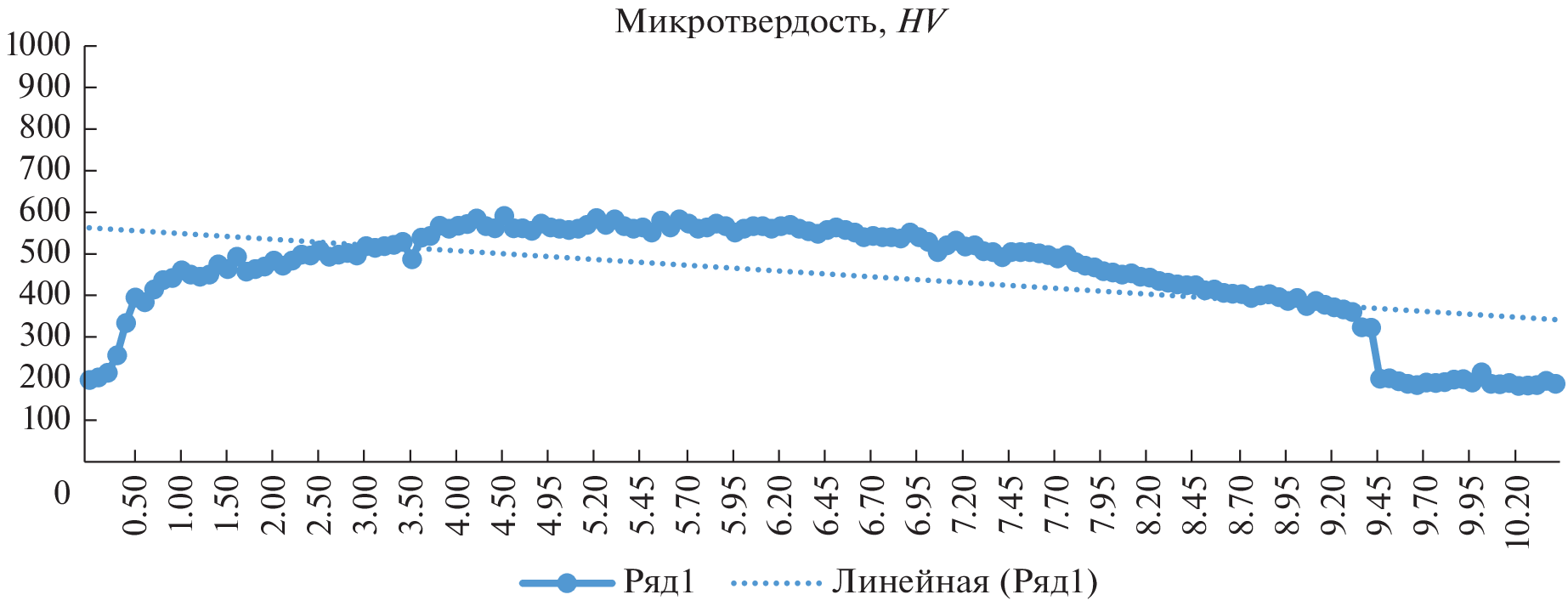 We studied the microhardness of the wear-resistant coating obtained by laser powder surfacing on the surface of 420 stainless steel. The dependences between the treatment mode, the obtained hardness and the geometry of the coating are established. It is determined that when a total equal voltage is applied to all diodes, the generated radiation does not provide uniform penetration of the substrate, and as a result, the formation of a uniform coating, both from the point of view of geometry and from the point of view of overall surface hardness. The hardness values of both individual solid particles of tungsten carbides and the total surface of the zone of thermal influence are obtained.