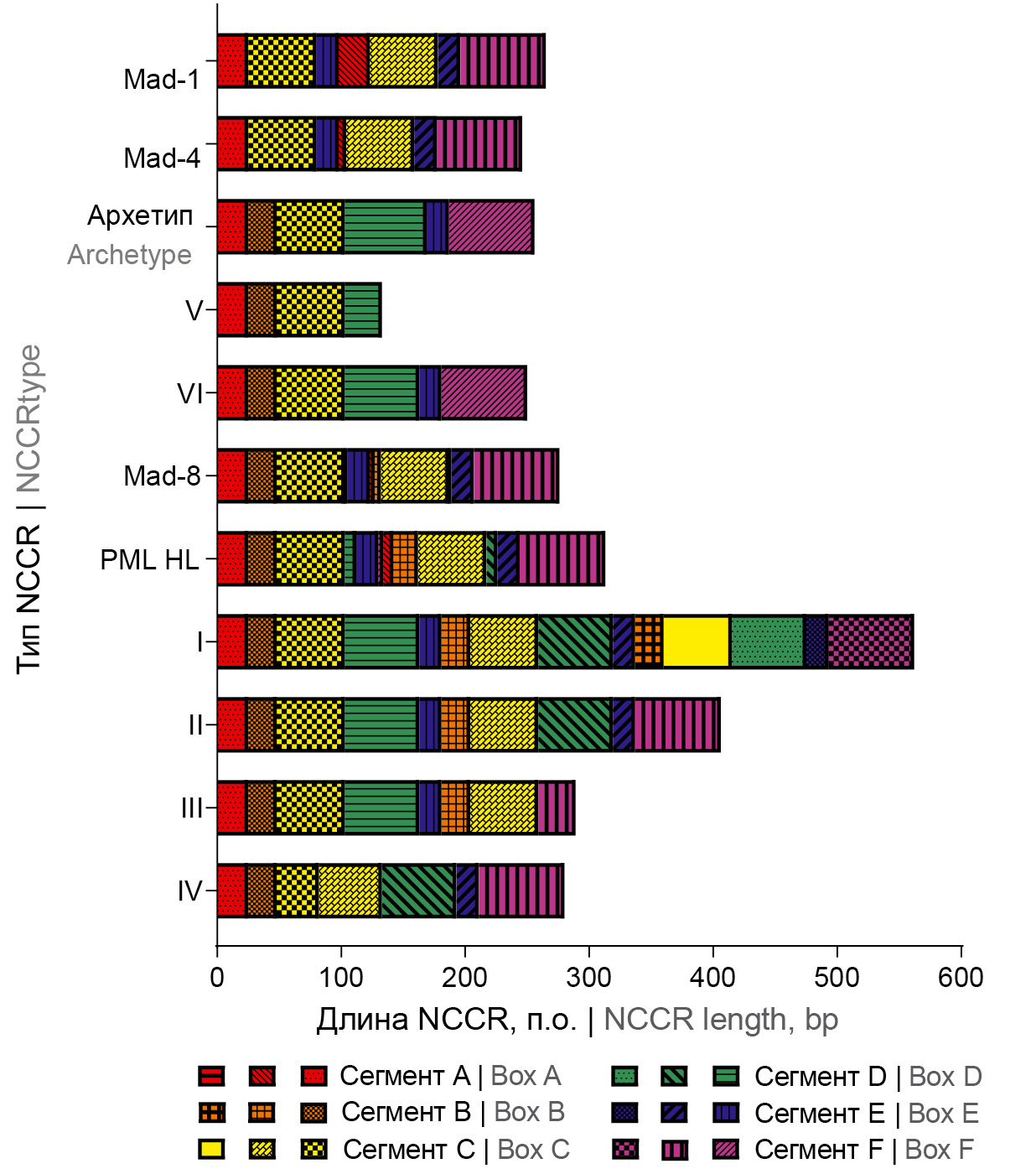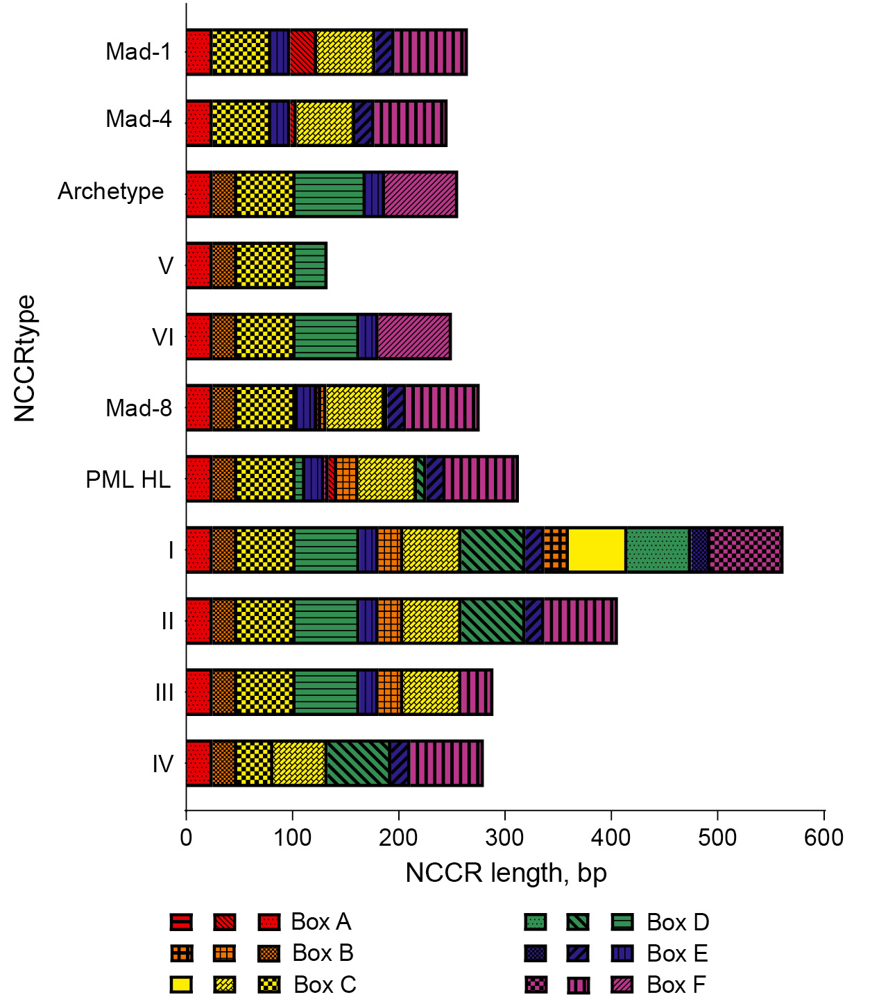 Conclusion. The study has helped identify previously unknown NCCR patterns typical of MS patients treated with natalizumab in Russia, thus confirming the need for the further research on NCCR rearrangements in MS patients undergoing natalizumab treatment to gain better understanding of the origin of neurovirulent JCPyV variants.