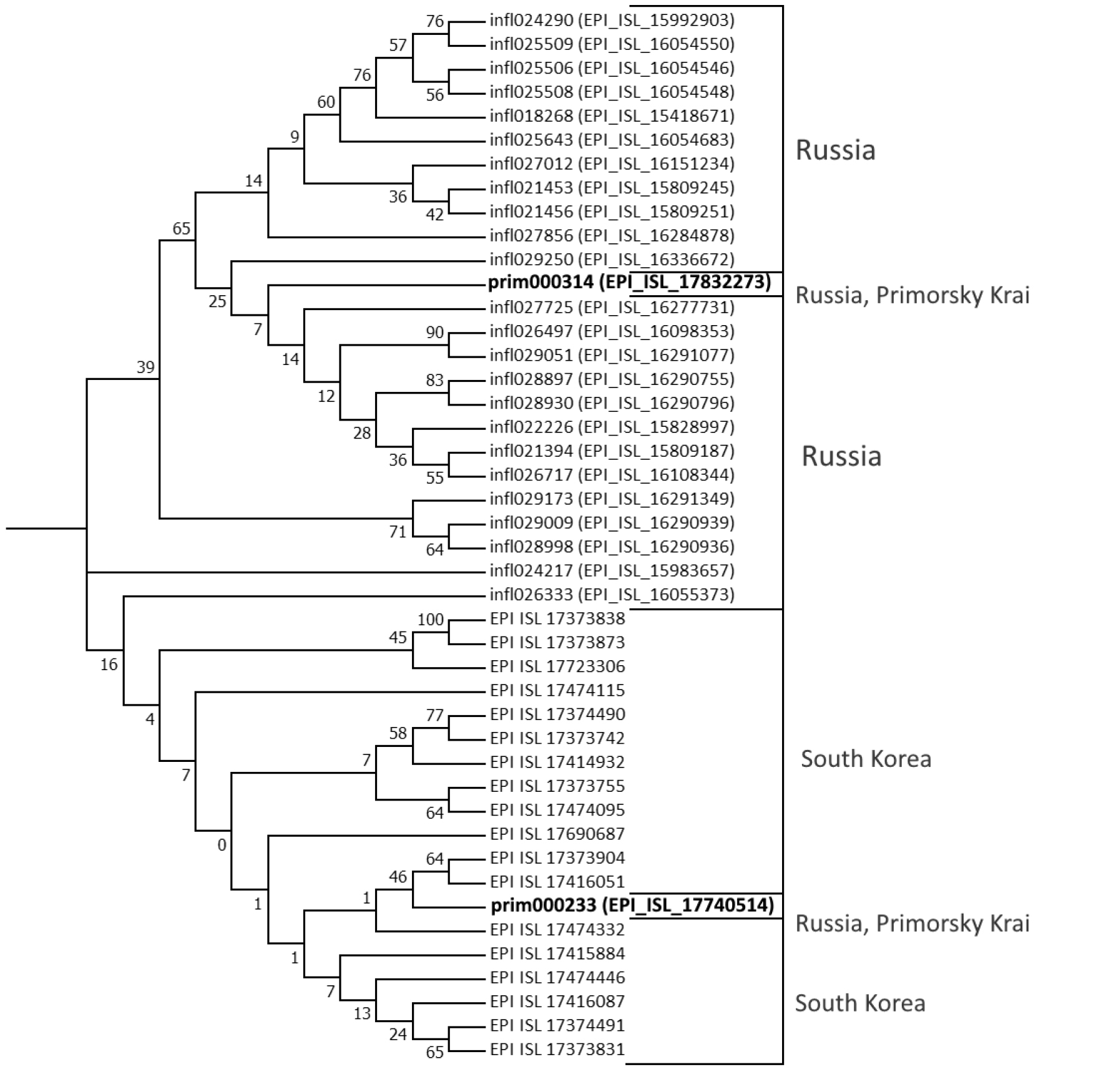 Conclusion. Due to the ongoing evolution of SARS-CoV-2, the possibility of the emergence of new pathogens, the peculiarities of the geographical location as well as political and economic importance of Primorsky Krai, it is necessary to consistently improve regional capabilities for operational molecular virological monitoring.