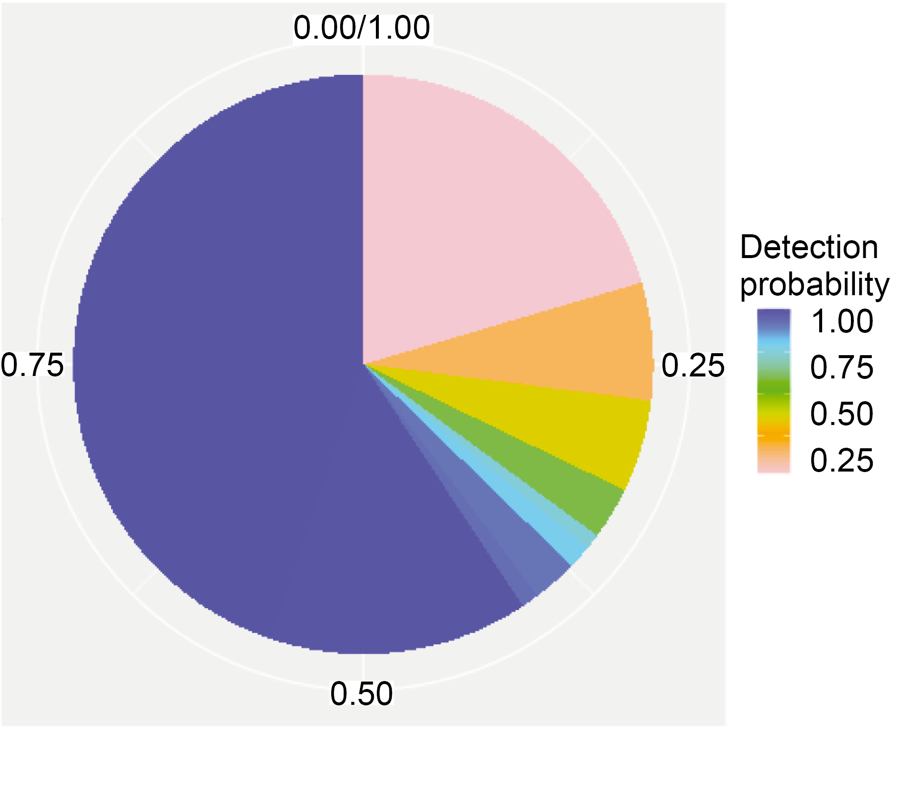 Fig. 1. Distribution of gene families of the pan-genome of S. pneumoniae serogroup 15 strains. The color of the sector reflects the probability of identification of the gene family in the genomes of isolates. The blue color shows highly conservative («core genome») gene families. For a color version of the picture, see the journal’s website.