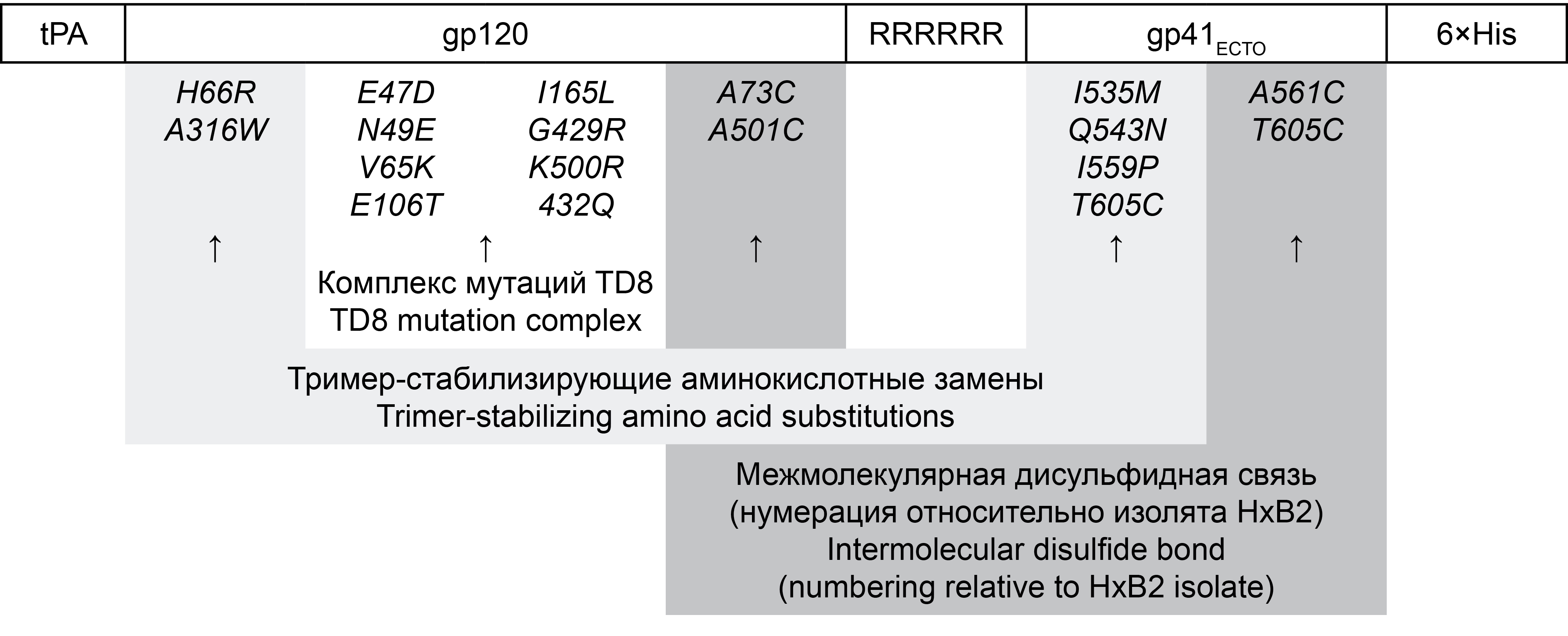 Introduction. Obtaining stabilized recombinant HIV-1 Env trimers that have a close to the native conformation is one of the directions in the field of development of vaccines against HIV-1.