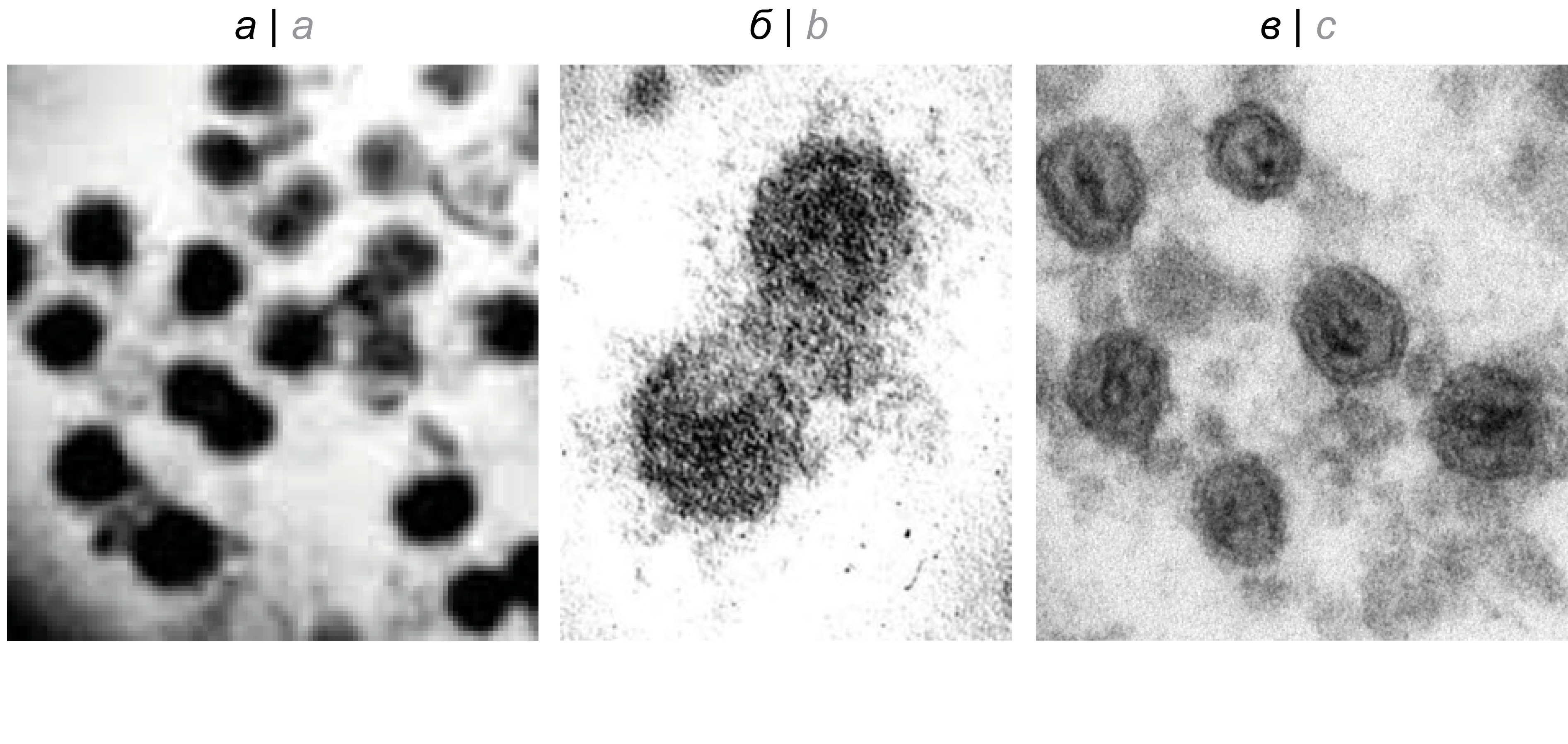 Рис. 2. Электронно-микроскопические фотографии лентивирусных ВПЧ.