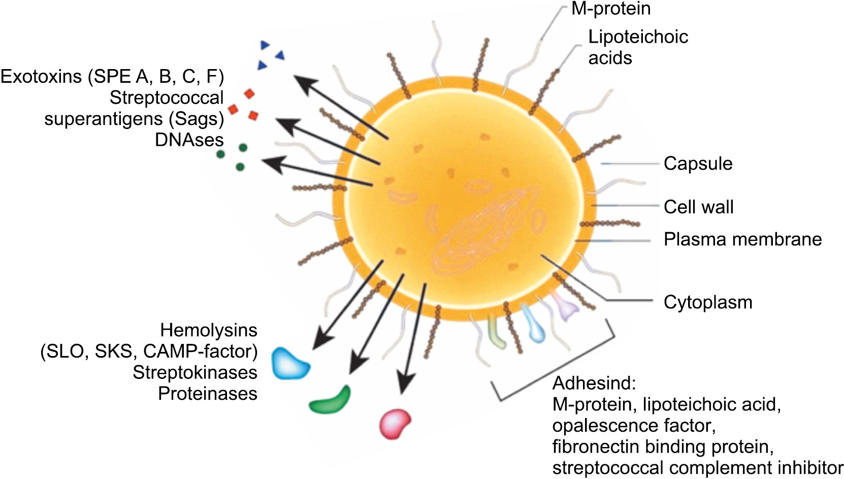 Fig. 2. Schematic representation of the streptococcal cell and the main biologically active products of S. pyogenes [19].