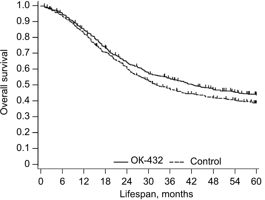 Fig. 17. Overall survival of gastric cancer patients who received OK-432 immunotherapy [57].