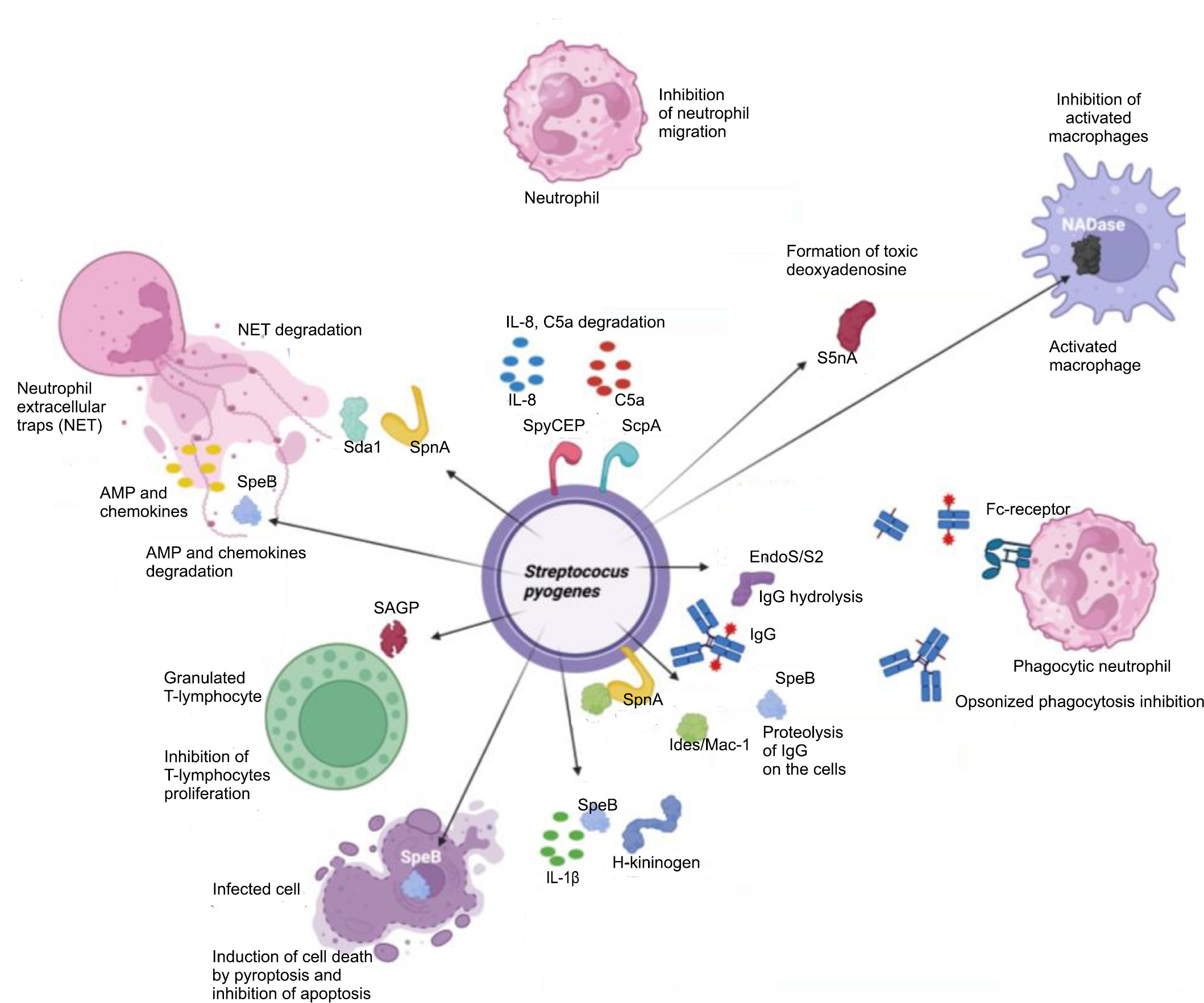 Fig. 18. Total scheme of the S. pyogenes effects to immune cells [61].