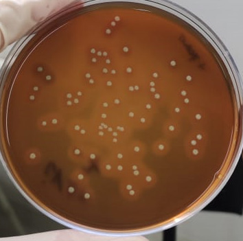 Рис. 4. Рост тест-штамма L. ivanovii ATCC19119 на модифицированной среде ГБМ-агар с внесением желточной эмульсии.