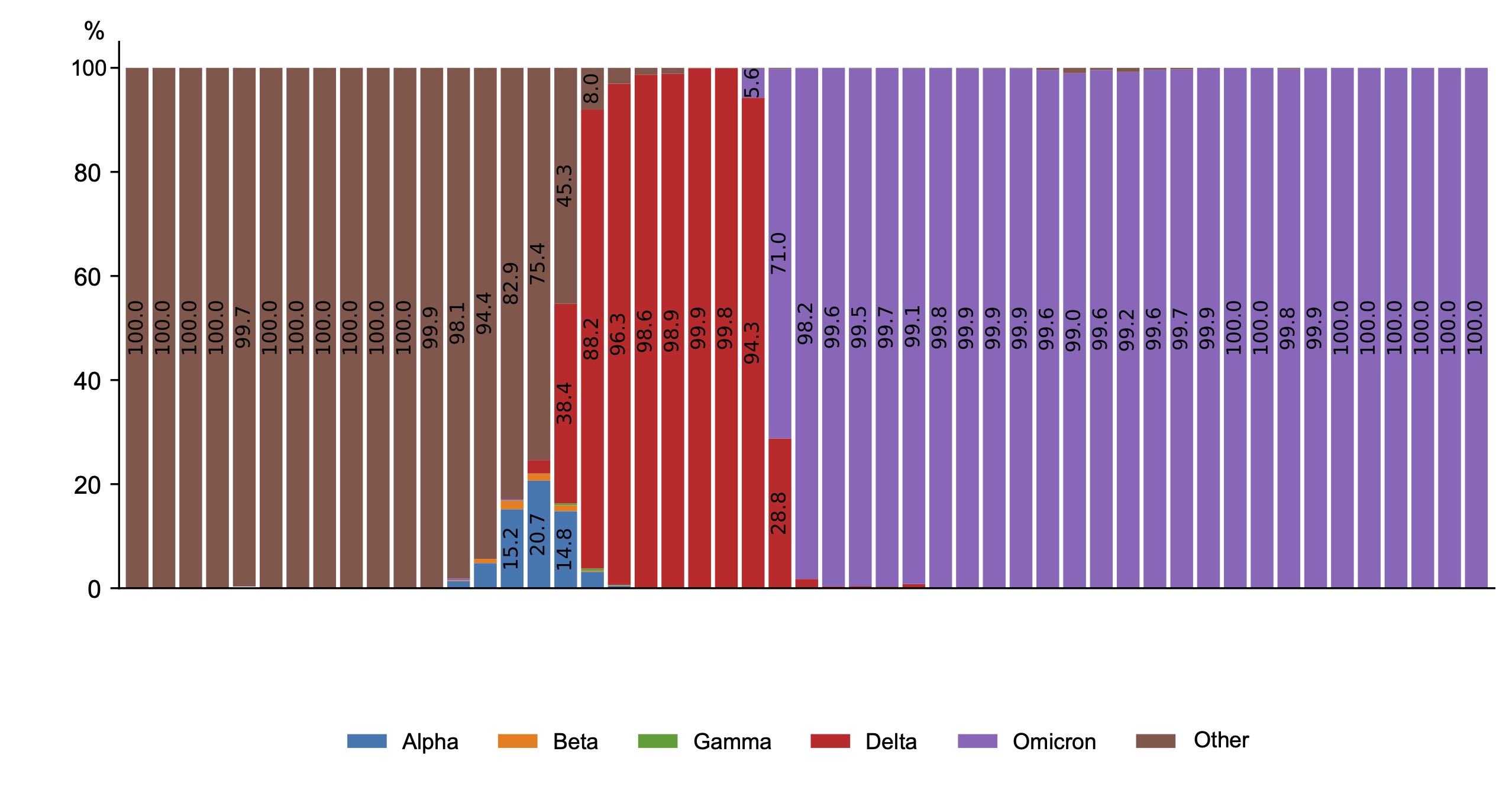 Fig. 2. Dynamics of Omicron genetic variant in Russia in 2022–2024.