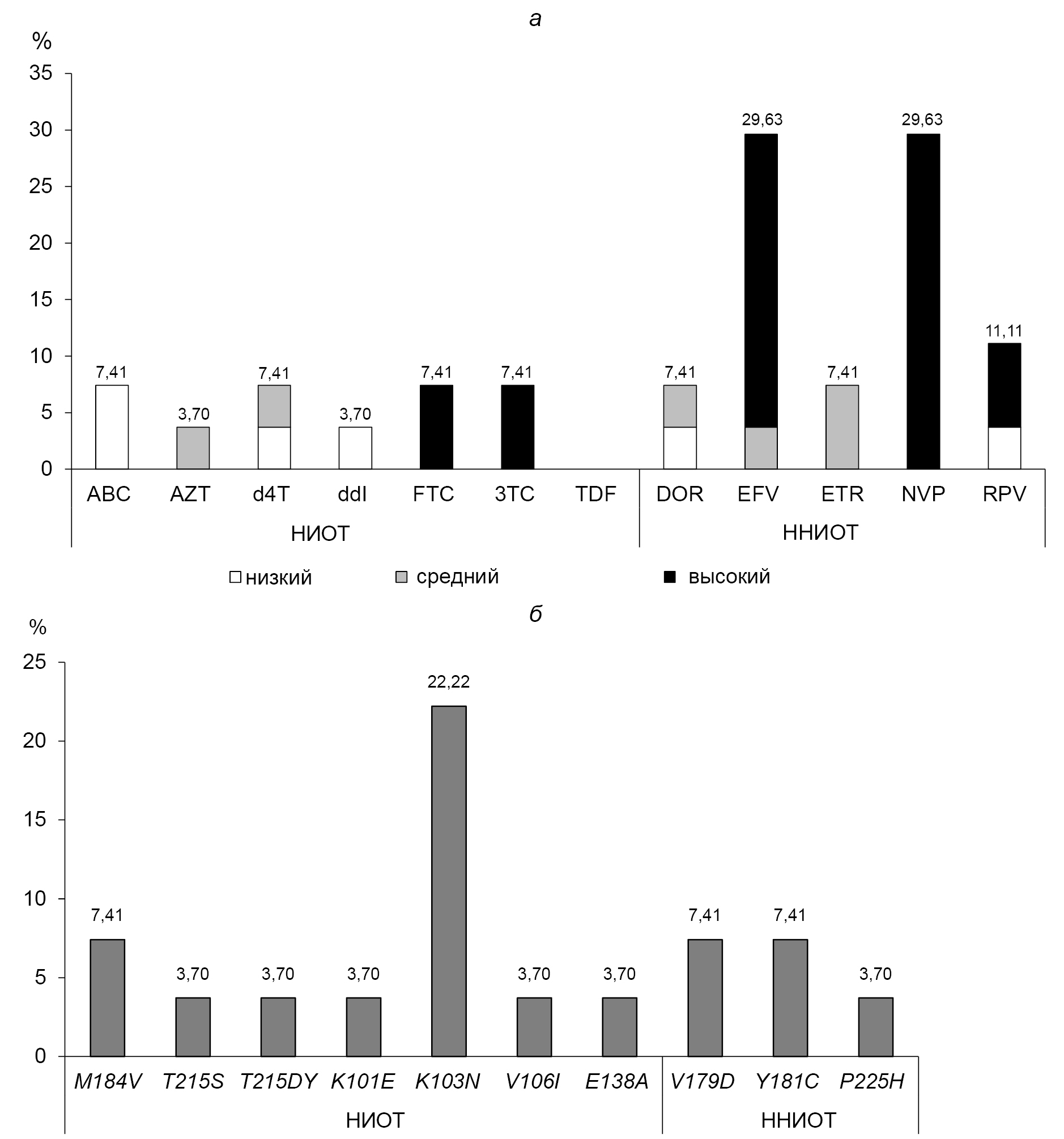 The analysis was carried out using the HIVdb online application, the degree of resistance was determined based on the calculation of the Stanford Penalty Score.