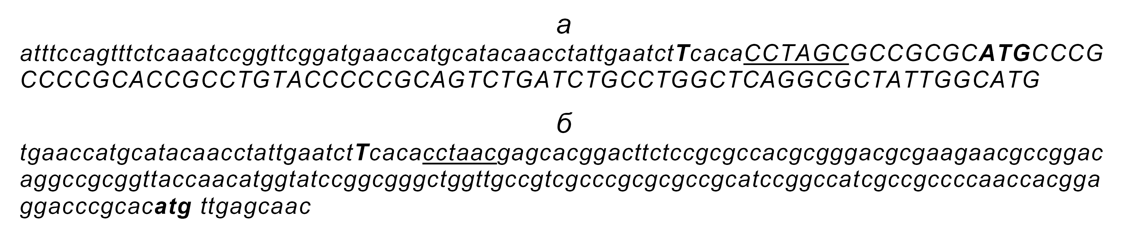 The absence of integrations at the cctagg site of the bvgAS operon analyzed in Hly– colonies against the background of their reliable detection by PCR in the population before its dispersion (up to 4% IS481 integrations (1)) allowed us to suggest that integrations at the corresponding site may be present in the genome of some bacteria that have retained hemolytic activity (with the Hly+ phenotype). Indeed, among the Hly+ phenotype bacteria, 41.7% of insertion mutants containing IS481 (1) in the bvgAS operon were found, while the native sequence of the operon around the integration site was preserved. Considering the analysis above and the orientation of IS481, it can be expected that an effective promoter, which ensures the transcription of the bvgS gene and the Hly+ phenotype in B. pertussis insertion mutants, is located at the end of the IS481 element opposite to that described by H. Han et al. [18] and in a study by S. Stibitz, who showed a differential decrease in the expression of the fhaB and ptx genes and less pronounced zones of hemolysis in B. pertussis insertion mutant bacterial colonies [12].