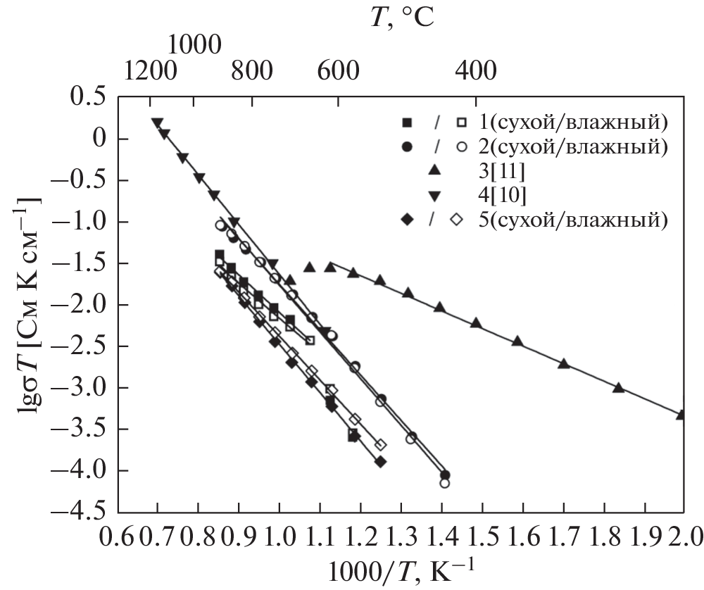 - Shlyakhtina, A.V., Lyskov, N.V., Kolbanev, I.V., Shchegolikhin, A.N., Karyagina, O.K., Shcherbakova, L.G., Key trends in the proton conductivity of Ln6 – xMoO12 – δ (Ln = La, Nd, Sm, Gd–Yb; x = 0, 0.5, 0.6, 0.7, 1) rare-earth molybdates, Intern. J. Hydr. Energy, 2021, vol. 46, p. 16989. https://doi.org/10.1016/j.ijhydene.2021.01.129