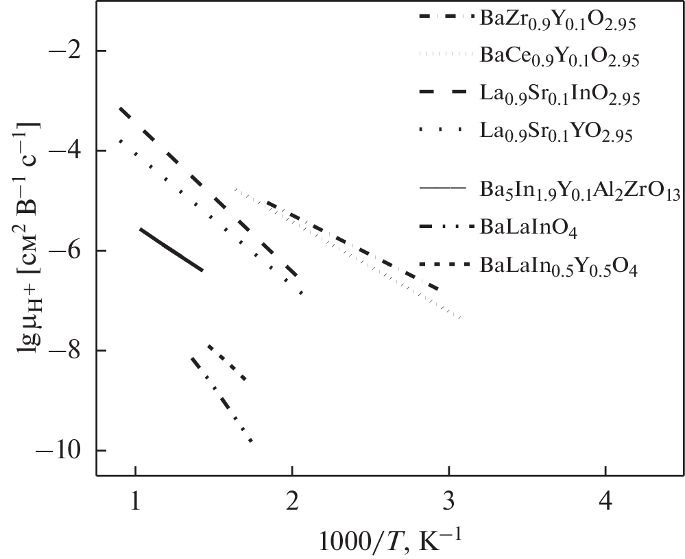 - Okuyama, Y., Kozai, T., Ikeda, Sh., Matsuka, M., Sakai, T., and Matsumoto, H., Incorporation and conduction of proton in Sr-doped LaMO3 (M = Al, Sc, In, Yb, Y), Electrochim. Acta, 2014, vol. 125, p. 443.
