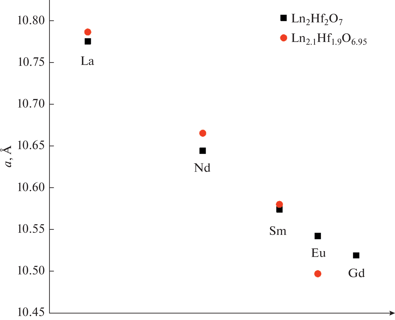 - Shlyakhtina, A.V., Lyskov, N.V., Shchegolikhin, A.N., Kolbanev, I.V., Chernyak, S.A., and Konysheva, E.Yu., Valence state of europium and samarium in Ln2Hf2O7 (Ln = Eu, Sm) based in oxygen-ion conductors, Ceram. Internat., 2021, vol. 47, p. 26898. doi.org/https://doi.org/10.1016/j.ceramint.2021.06.099