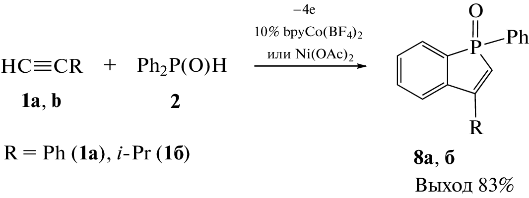 - Khrizanforova, V.V., Kholin, K.V., Khrizanforov, M.N., Kadirov, M.K., and Budnikova, Y.H., Electrooxidative CH/PH functionalization as a novel way to synthesize benzo[: B] phosphole oxides mediated by catalytic amounts of silver acetate, New J. Chem., 2018, vol. 42, no. 2, p. 930.