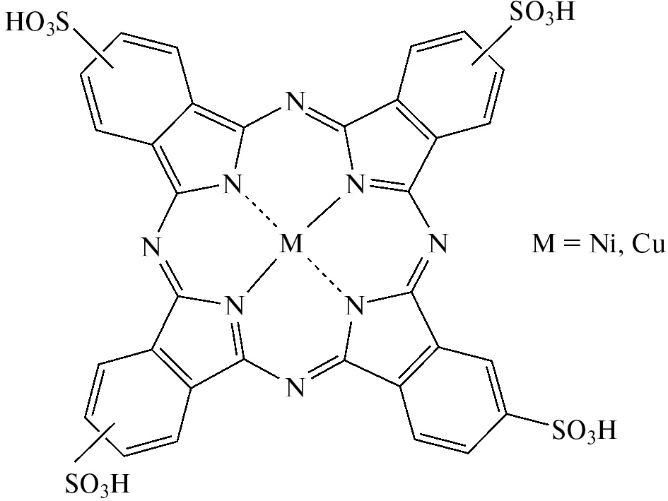 Рис. 1. Структурные формулы тетра–4-сульфофталоцианинатов никеля(II) и меди(II)