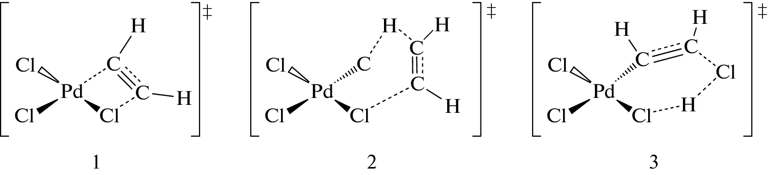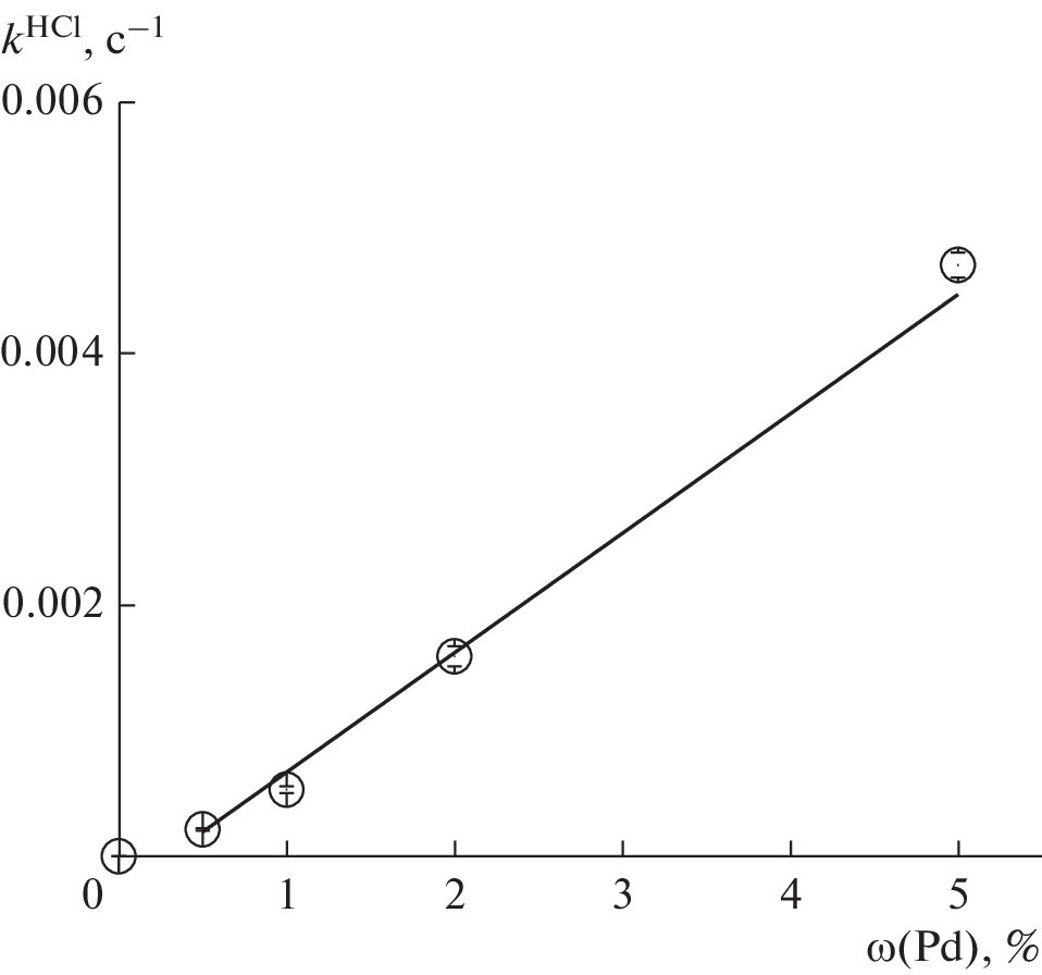 The products of catalytic hydrochlorination of acetylene-D2 over palladium chloride complexes supported on activated carbon are a mixture of vinyl chloride stereoisomers resulting from syn- and anti-addition of the hydrogen chloride molecule to the triple bond. The reaction is accompanied by isomerization of primary trans-vinyl chloride into its cis-stereoisomer, but the characteristic isomerization times exceed significantly the duration of acetylene hydrochlorination. This fact allowed us to estimate the portion of products formed exclusively during the catalytic reaction, the difference in the effective activation energies of the syn- and anti-addition routes (~21 kJ/mol), and to demonstrate a monotonic increase in the part of the syn-addition product with increasing mass loading ω of the active metal, reaching saturation at ω > 2 wt %.