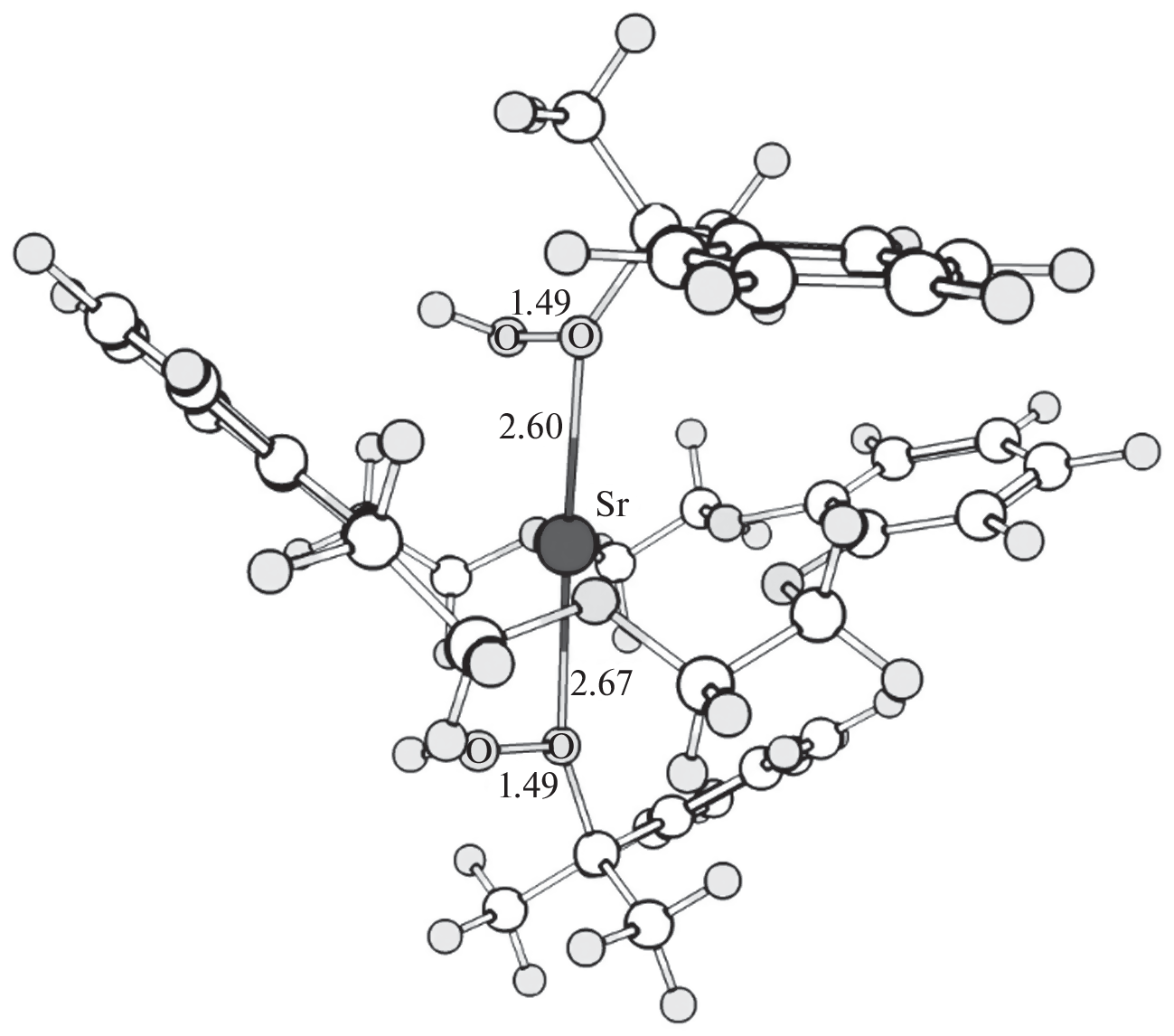 Экспериментально получены кинетические и термодинамические параметры процесса распада гидропероксида изопропилбензола в хлорбензоле в присутствии комплексов дибензо-18-краун-6 эфира (ДБК) с CaCl2, SrCl2, BaCl2. Каталитическая активность соединений щелочноземельных металлов уменьшается в ряду SrCl2⋅ДБК > CaCl2⋅ДБК > BaCl2⋅ДБК. Кинетически установлено образование промежуточных интермедиатов в системе металлокомплекс‒гидропероксид. SrCl2·ДБК формирует наиболее прочные и упорядоченные структуры с гидропероксидом изопропилбензола, которые распадаются с наибольшими скоростями. С помощью квантово-химического моделирования подтверждено образование промежуточных интермедиатов.
