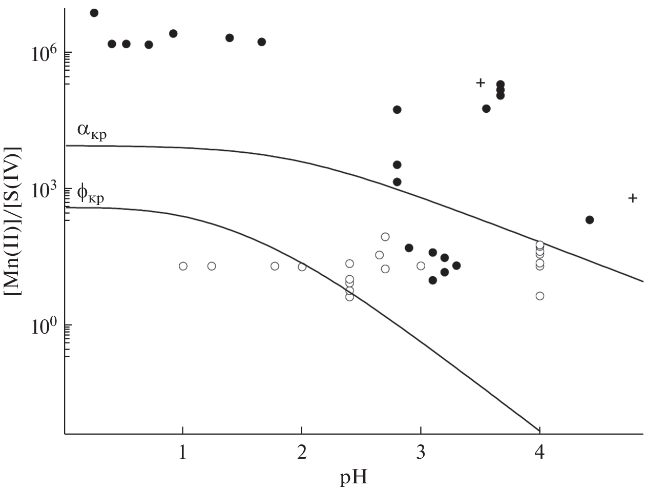 В работе рассматриваются данные о кинетике катализа ионами марганца(II) окисления сульфита в избытке ионов металла. Наряду с результатами опытов в растворах привлекалась информация и о динамике реакции в аэрозольных частицах. Впервые выявлен быстрый вырождено-разветвленный (ВР) режим реакции. Его динамику определяет скорость разветвления цепи с участием полупродукта \({\text{HSO}}_{5}^{ - }\) и ионов Mn(II). В работе приводятся оценки константы скорости этой реакции, и рассматривается критерий перехода реакции в ВР-режим. Показано, что наблюдаемое ускорение образования сульфатов в ВР-режиме в опытах с аэрозолем является результатом сопряжения каталитической реакции и захвата SO2 из газа. Расчеты в этих рамках динамики реакции находят согласие с данными опытов в smog chambers, а также с результатами мониторинга атмосферного аэрозоля.
