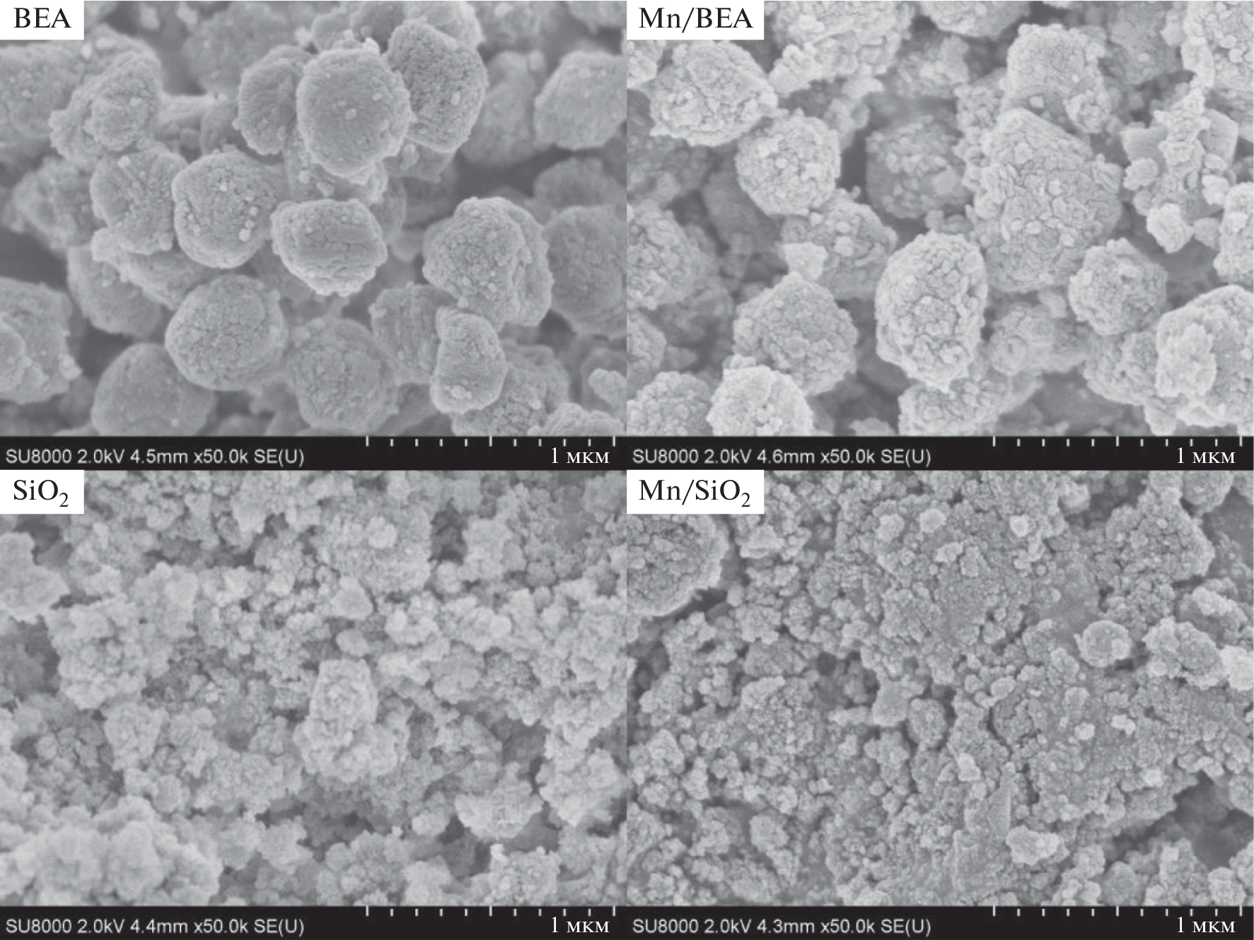 Catalytic characteristics of Mn-catalysts supported on different (SiO2 and BEA zeolite) were compared in the ozone decomposition and ozone-catalytic oxidation (OZCO) of VOCs using n-butane as the model compound. The parent SiO2 did not show any activity; therefore the characteristics of Mn/SiO2 are determined by the catalytic properties of the supported MnOx oxide. In contrast to SiO2, BEA zeolite demonstrates significant catalytic activity, though at a temperature by 50°C higher than Mn/BEA. The data obtained allow us to conclude that the catalytic characteristics of Mn/BEA at 30–100°C are determined by the Mn component of the catalyst. At higher temperature the catalytic properties of BEA can significantly affect the course of the OZCO process. The zeolite carrier improves hydrocarbon conversion at 100–200°C and decreases the amount of ozone required for the OZCO process over Mn/BEA.