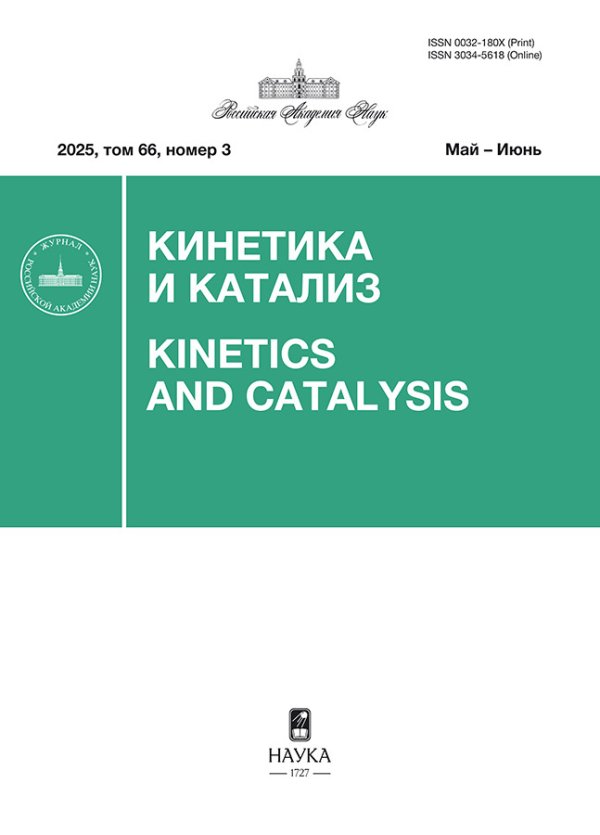 The application of IR spectroscopy in situ enabled the identification of ethoxy groups, acetate complexes, and complex products on the surface of nickel supported catalysts during the ethanol decomposition reaction in the range of 250–325°C. Ethoxy groups are formed according to the classical scheme with the participation of hydroxyl groups of the surface and are localized along the boundaries of metal clusters. The source of formation of acetate complexes are ethoxy groups. Complex surface compounds formed due to the condensation reaction of CH2 groups prevent surface carbonization. Surface complexes activated by adsorption diffuse onto metal clusters, where they undergo further transformations. The dependence of the concentration of ethoxy groups on time under ethanol conversion conditions is not processed in either first- or second-order coordinates. Apparently, ethoxy groups are involved in several surface reactions. The intensity dependence of the absorption band of acetates is processed in the coordinates of the first-order equation.