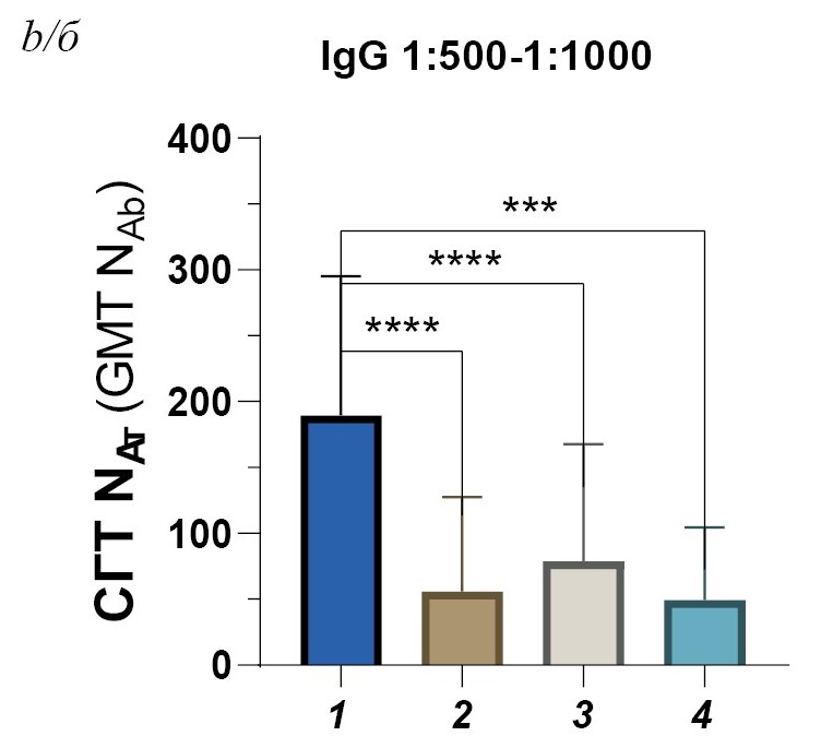 Results. A decrease in the levels of neutralizing antibodies against heterologous strains compared to the vaccine strain was observed: for the Siberian strains Ekb_1887_1 and the Vasilchenko, a decrease was of 3.9 and 2.4 times, respectively; for the European strain, a 4.9-fold decrease compared to vaccine strain was observed. In case when IgG antibody titers were below 1 : 500, the titers of antibodies to TBEV strains heterologous to the vaccine did not exceed the minimum detectable value of 1 : 10. For individuals with IgG antibody titers below 1 : 100, antibodies to Sofyin strain were not detected. Individuals with reduced titers of virus-specific antibodies more often had deviations from the recommended vaccination schedule.