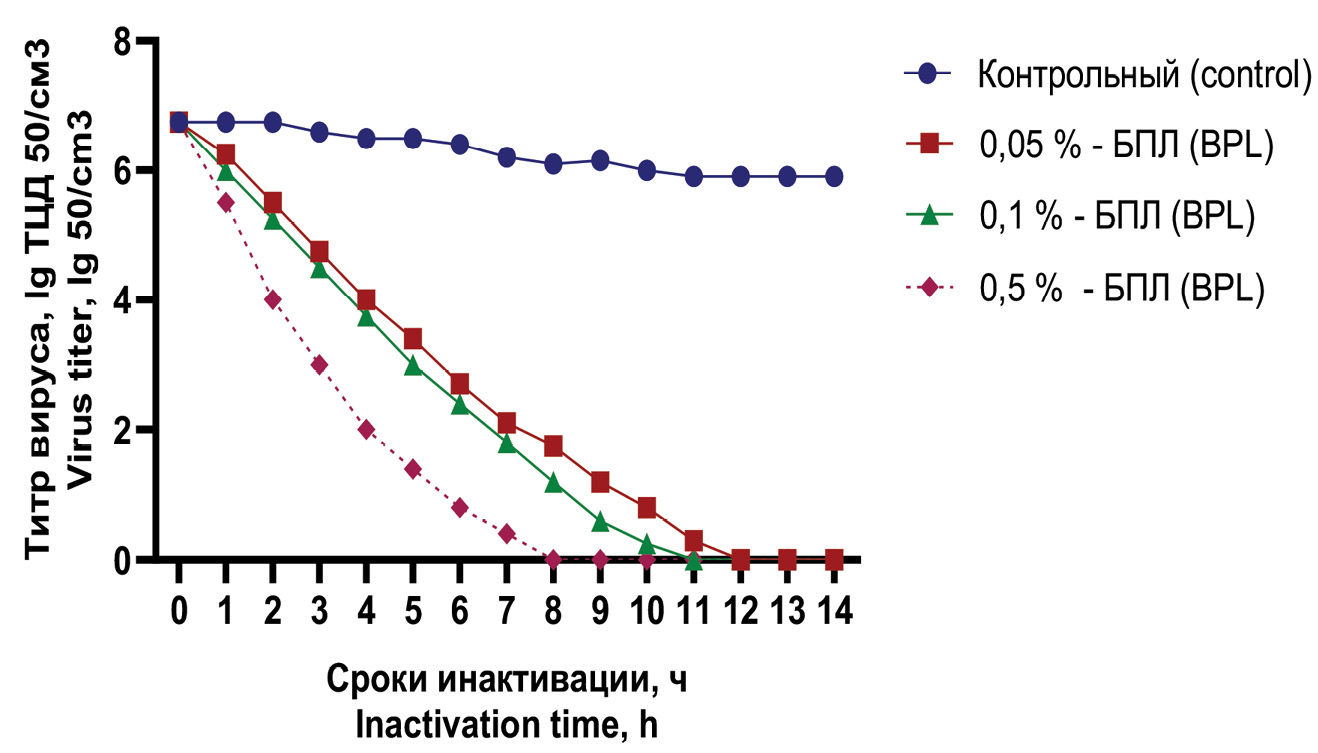Введение. Быстрое распространение новой коронавирусной инфекции (COVID-19) среди населения многих стран мира способствовало появлению множества генетических вариантов вируса SARS-CoV-2. По сравнению с предыдущими вариантами коронавируса, новые субварианты варианта Омикрон продемонстрировали заметную степень мутации. Инактивация вируса является одним из наиболее важных этапов разработки инактивированных вакцин. В качестве химического инактиванта в настоящее время используют β-пропиолактон и формальдегид, однако не существует единого стандарта для проектирования и определения процесса инактивации.