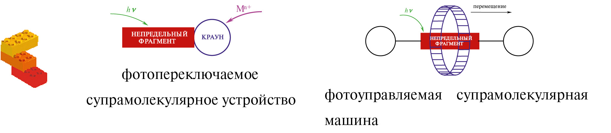 Важным направлением исследований, проводимых на кафедре, является дизайн монозамещенных пиллар[5]аренов, функционализированных фосфорсодержащими, карбоксильными, амидными и аммонийными фрагментами [37–51]. На их основе разработан подход к формированию ротаксановых структур [37], супрамолекулярных полимеров [39, 40], комплексов самовключения и твердых липидных наночастиц [41, 42], способных к инкапсуляции биологически значимых субстратов. Кроме того, предложен и реализован подход к получению водорастворимых деказамещенных пиллар[5]аренов [43–45], содержащих фрагменты аминокислот, а также показана их способность к связыванию гербицидов [46], красителей [47, 48], и ингибированию холинэстеразы [49].